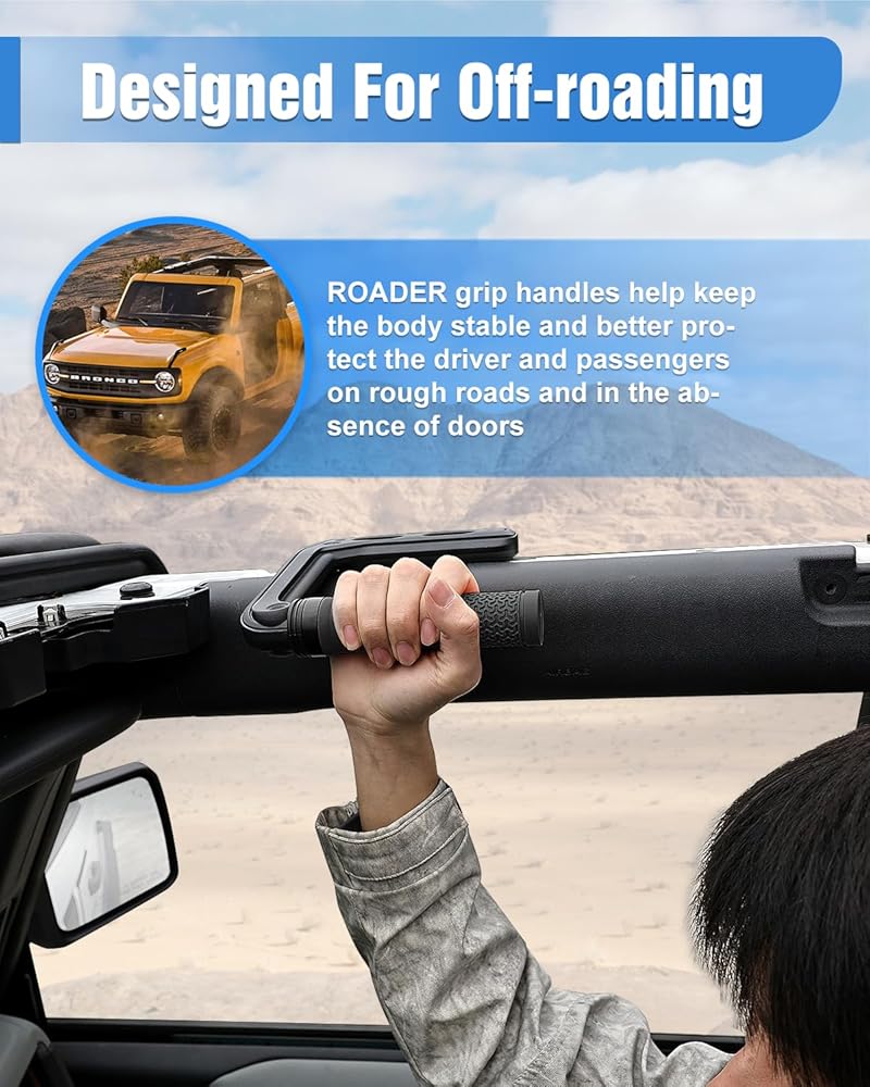 【OFF-ROAD & UNIQUE DESIGN】ROADER bronco grab handles is finely designed to perfectly match Bronco's off-road style,simple and stylish appearance,smooth lines that not only look great,but add a lot of quality and uniqueness to your Bronco.