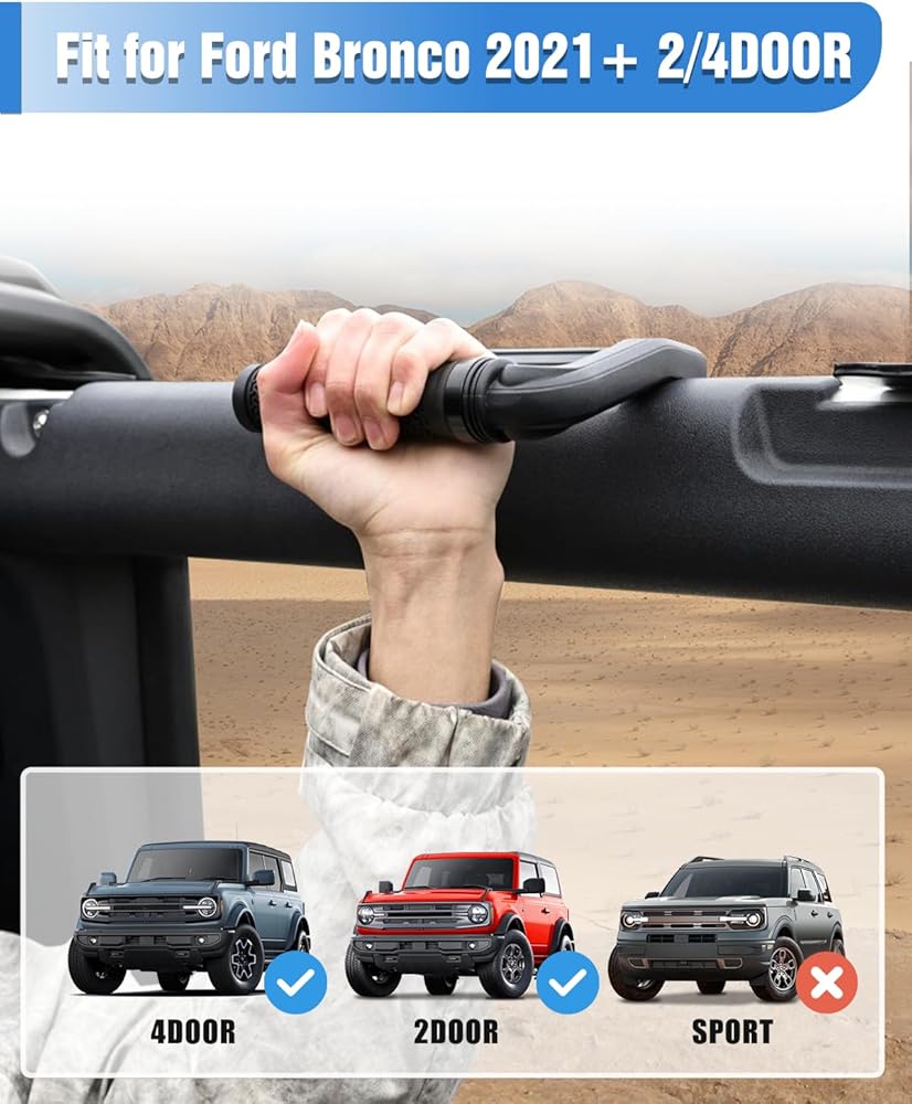 【PERFECT FITMENT】ROADER roll bar grab handles compatible with 2021 2022 2023 2024 2025 New Ford Bronco & Bronco Raptor 2/4 door, works on both soft & hard top, not fit in Bronco Sport.(2 pack can be installed not only in the front seat but also in the rear seat)