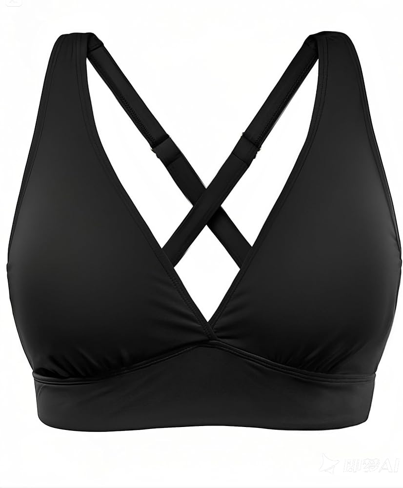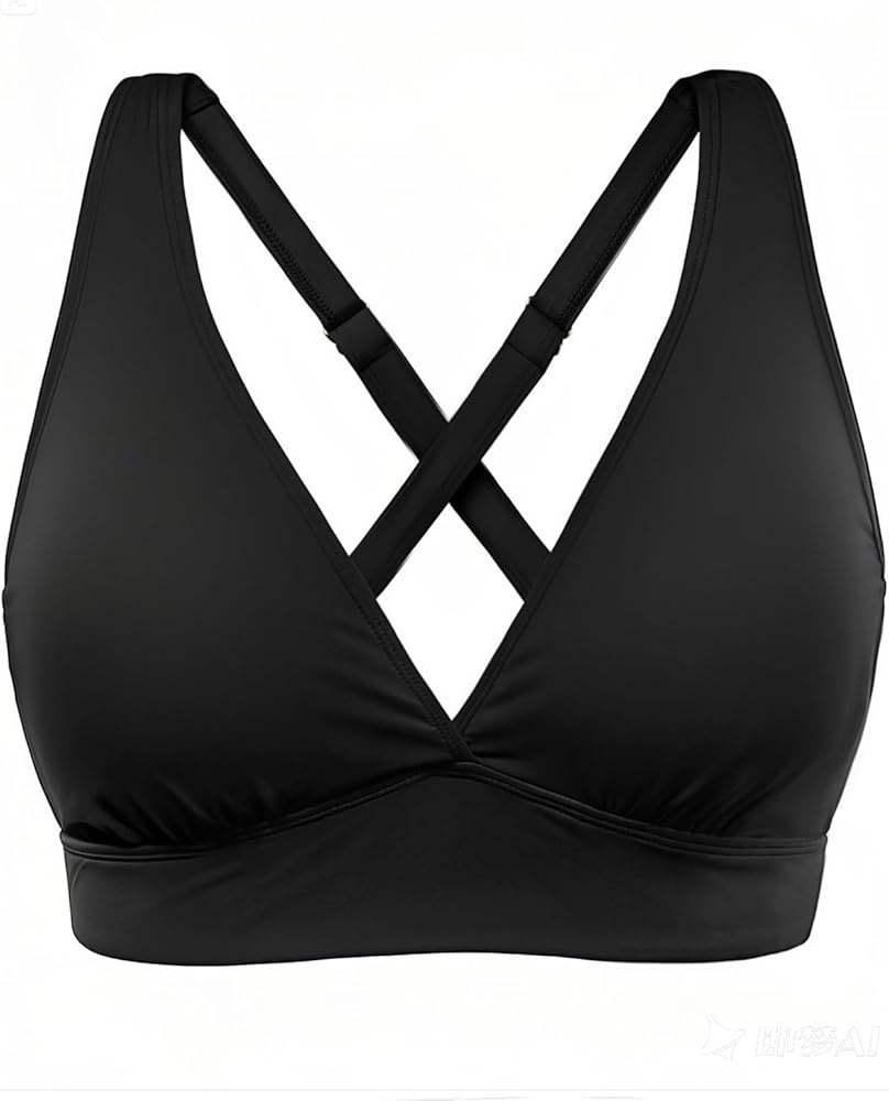 Black Cute Swimsuit Top: This swim bra features an overlapping V-nex design that accentuates your natural curves.