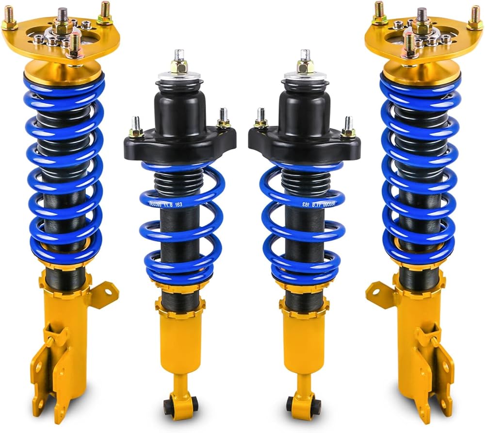 [Spring Rate] --- Front:6kg/mm(336 lbs/in) ; Rear:10kg/mm(560 lbs/in); Front Spring Length:180mm, Rear Spring Length:230mm; Front Coilover Overall Length: 540MM-640MM, Rear Coilover Overall Length: 550mm-660mm