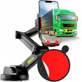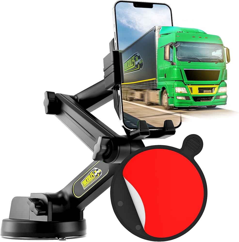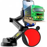 Cell Phone Mount for Truck Phone Holder for Truck Drivers - Heavy Duty Suction Cup + Dashboard Pad, iPhone Holder for Dashboard Window 16.9 inch Long, for iPhone & Samsung, Commercial Trucker, Black