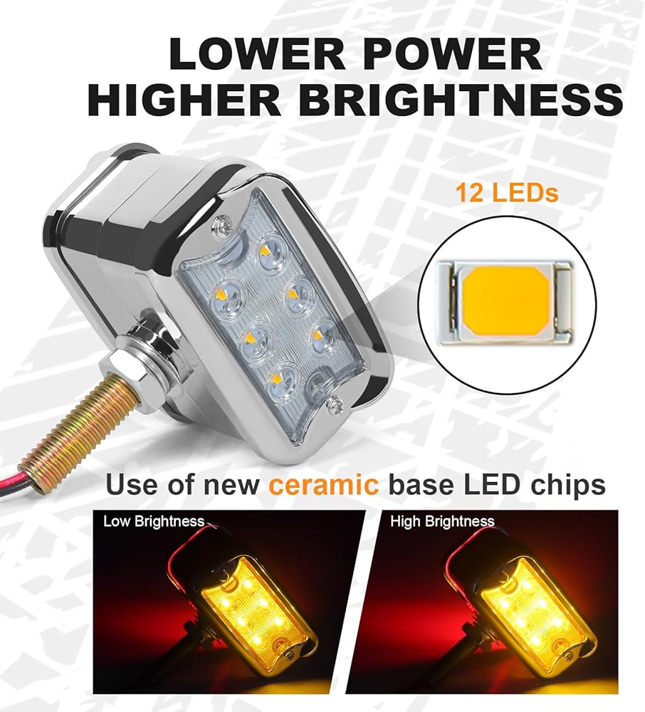 【LOWER POWER, BRIGHTER LIGHT】NeaLia Red Amber Pedestal Fender Lights feature a ceramic base to reduce heat, saving energy while increasing brightness and extending lifespan