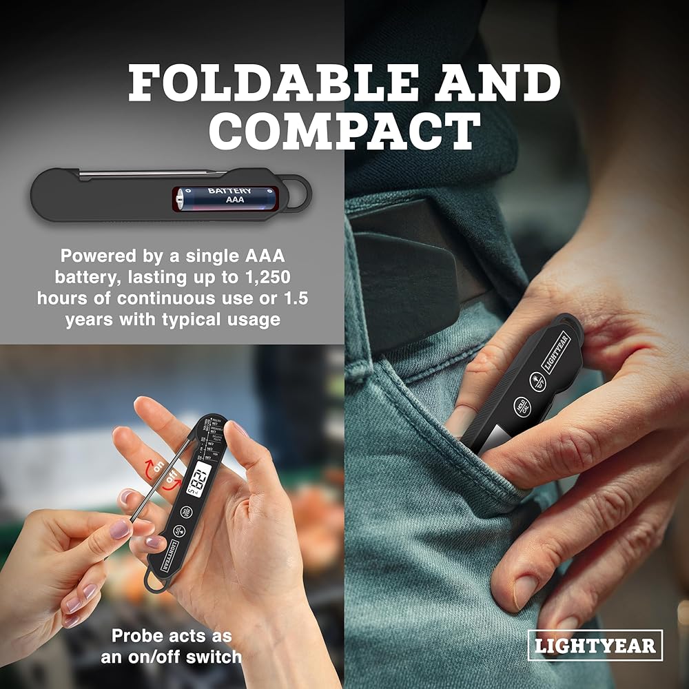 A BRAND YOU CAN COUNT ON: With years of expertise, Lightyear offers high-quality kitchen thermometers designed to make cooking easier and more precise. Our meat thermometers help you achieve professional-level results at home, whether grilling, roasting, or BBQing your favourite meats.