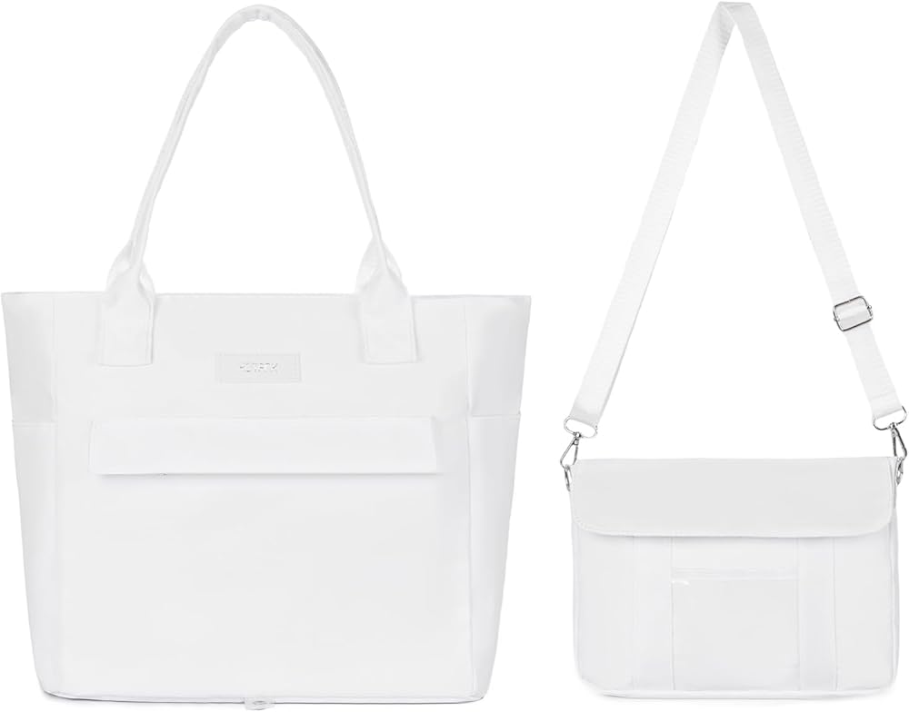 Large bag size:16.93*4.92*11.42 inches (l*w*h), handle height: 8.86 inches (long enough to fit on your shoulder), suitable for daily travelling/working use. this tote bag has 2 compartments and a zip pocket inside, back zip pocket, two side storage pockets