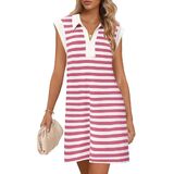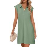Features: The short shift dresses for women feature v neck, lapel collar, cap sleeve, loose fit, solid color, above knee length, and two side slit pockets, casual dresses for women 2025, cute summer dresses for women 2025