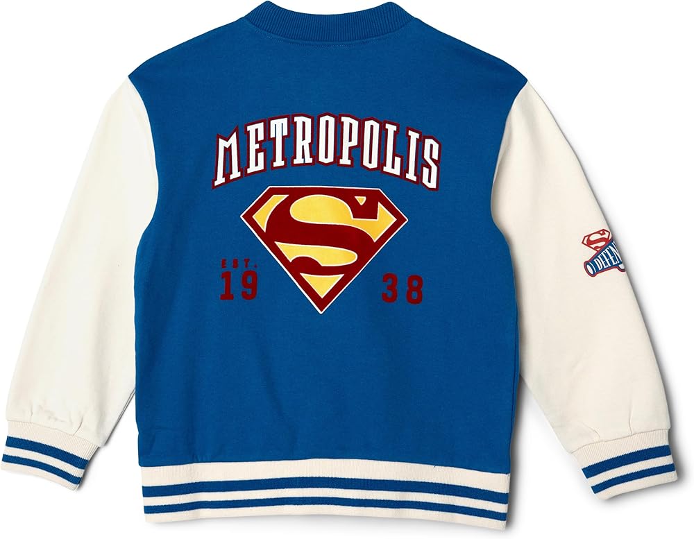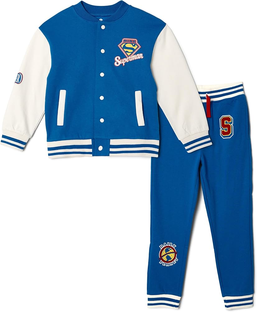 Get your little superhero ready for action with this DC Comics Justice League Fleece Varsity Bomber Jacket and Jogger Pants Outfit Set. Made from soft and cozy fleece, this set is perfect for keeping your child warm and comfortable while they save the day. The letterman jacket features a classic varsity design with the iconic Batman or Superman logos, while the jogger pants have a trendy and comfortable fit. Available in sizes for toddlers to big kids, this outfit set is a must-have for any young fan of the Justice League. Perfect for playtime or casual wear, this set is sure to be a hit with your little hero.