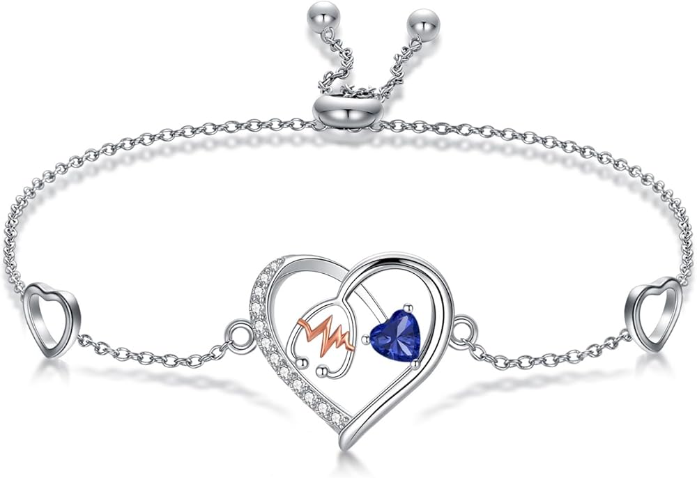 【12 Month Birthstone Bracelet】: This stethoscope birthstone bracelet is highlighted by exquisite love stones. Each birthstone is carefully selected and cut to show its unique and beautiful color. Everyone has his or her own birthstone, conveying good wishes for love and happiness.