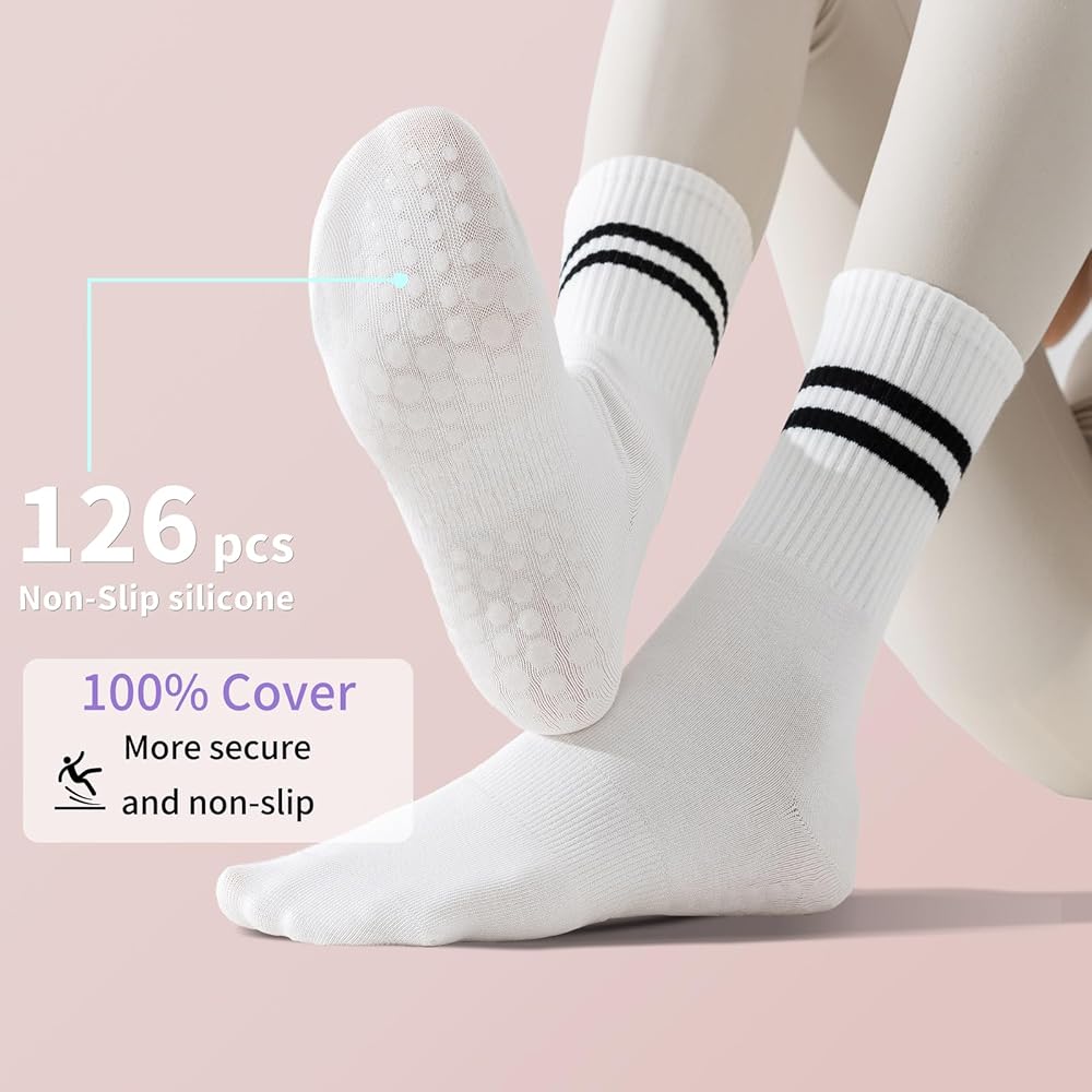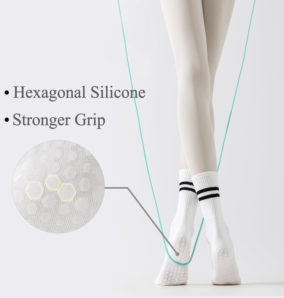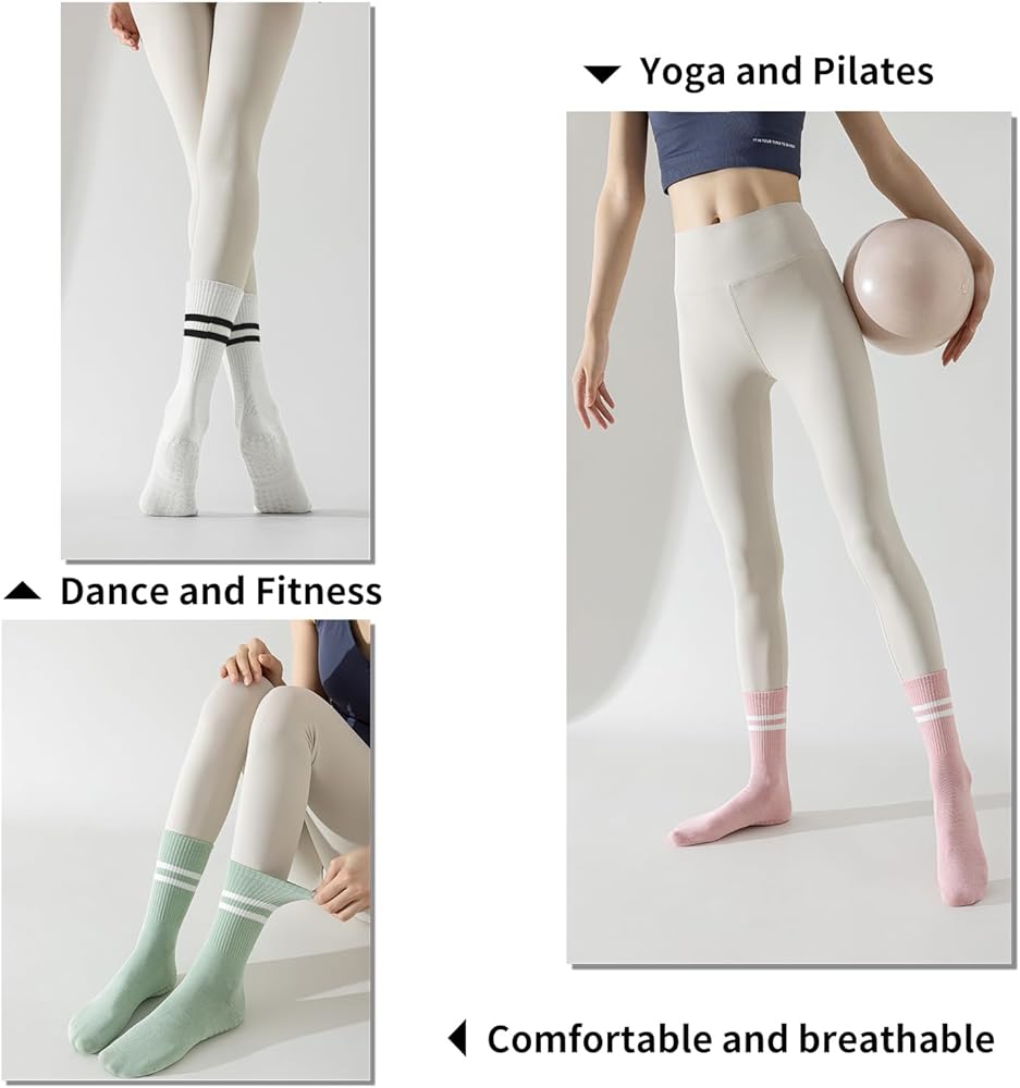 【Material】 Selected high-quality cotton polyester blend fabric, yoga socks are soft and snug, moisture wicking, and can be worn for a long time without feeling stuffy. Whether it's practice or daily dressing, it can bring you the ultimate comfort experience.