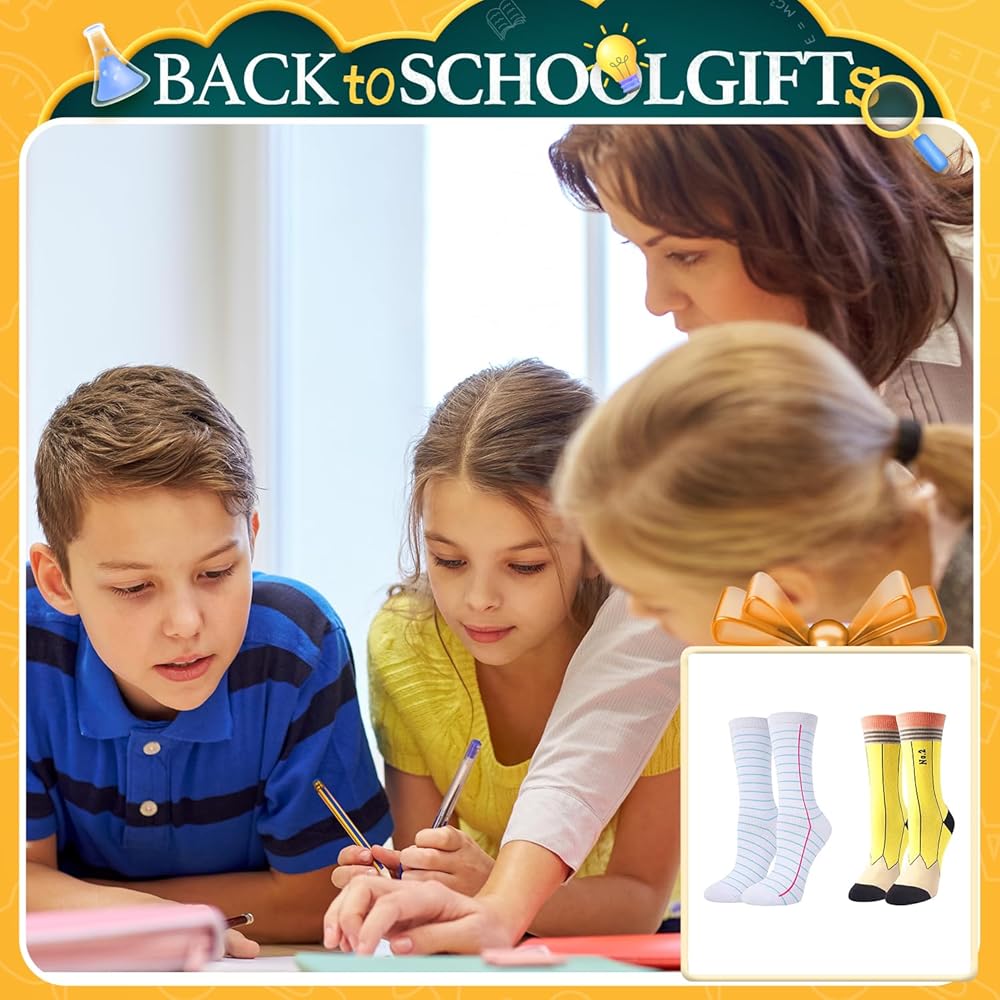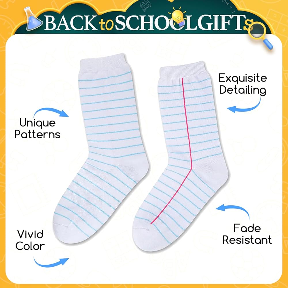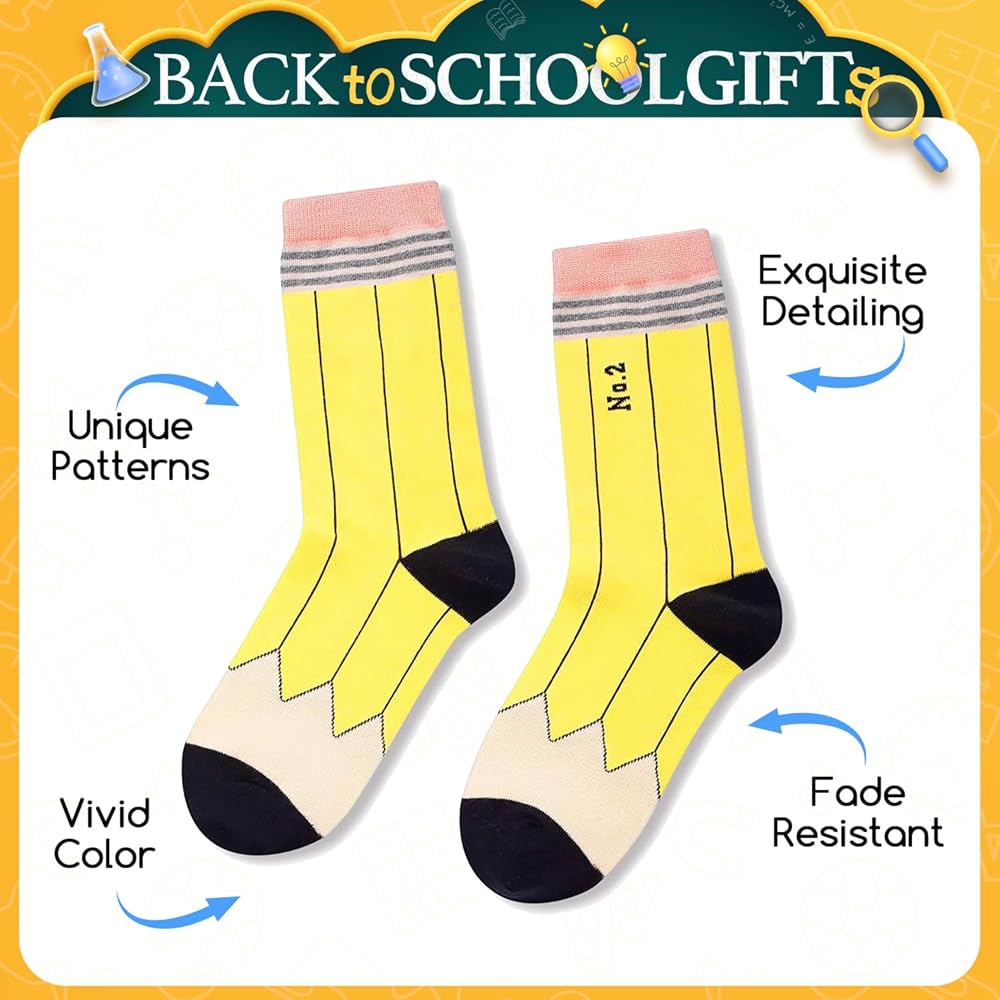 SIZE & PACKAGE: One size fits most. Our women's crazy socks are designed to fit shoe sizes 6-12 and sock sizes 8-13. Each exclusive gift box contains 2 pairs of funny socks, making it the perfect gift for back-to-school students.