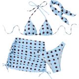Unique Design: Fashion swimsuit for women, halter, wireless bra, self tie at neck and back bikini top, allover print, high cut bikini, drawstring beach skirt with headband, adjustable thong bottoms and sheer cover up, which is to form a sexy style and making you look attractive in the crowd.