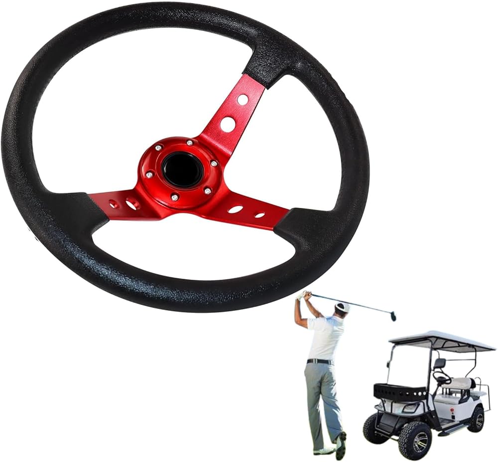 Universal Racing Steering Wheel,Drifting Deep Dish Steering Wheel 13.8"/350mm 6 Bolts Grip Vinyl Leather & Aluminum with Horn Button for Car Golf Cart (Red)