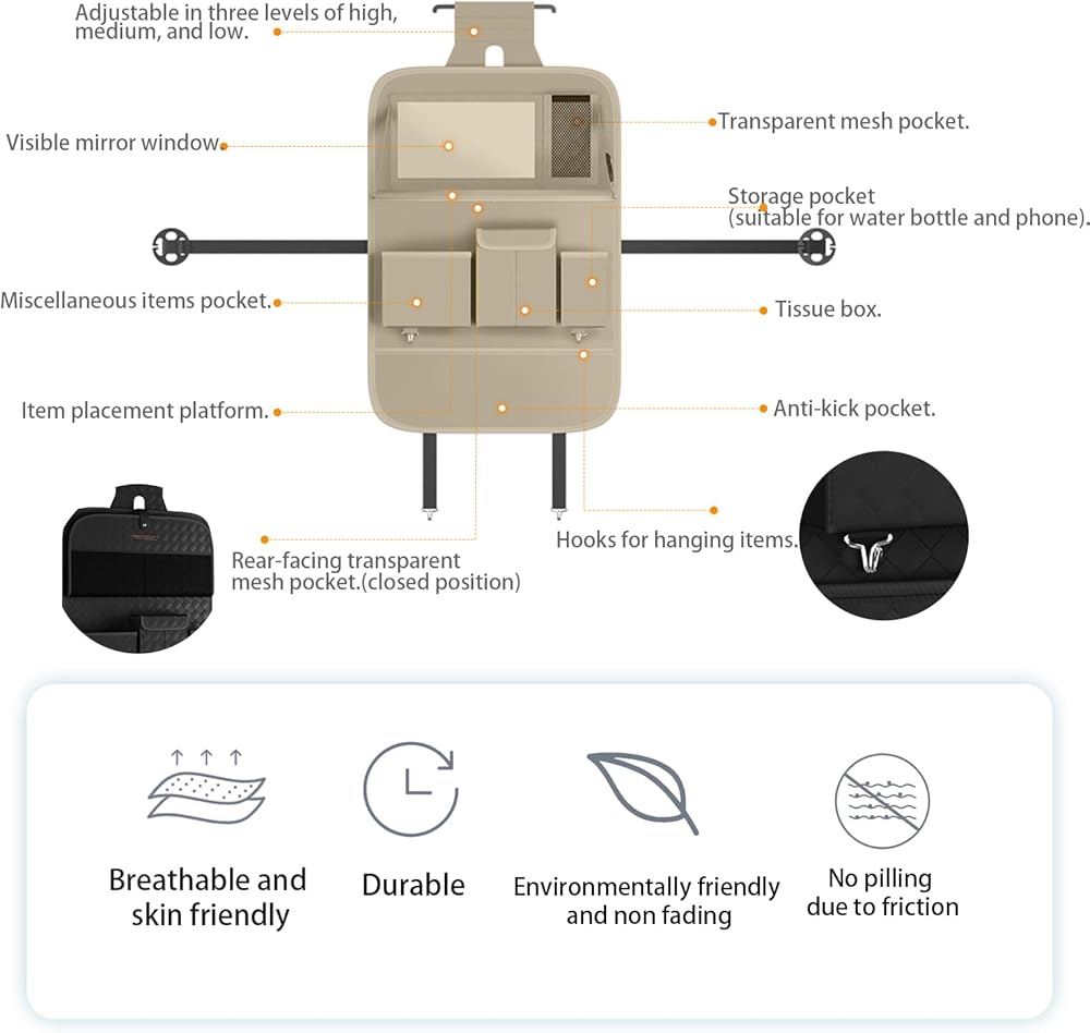 [Car Seat Organizer]-We use safe, thick, and high-quality durable materials to make a rear seat organizer for children.Enjoy the support plastic strips, sturdy straps, and reinforced buckles on their tops.