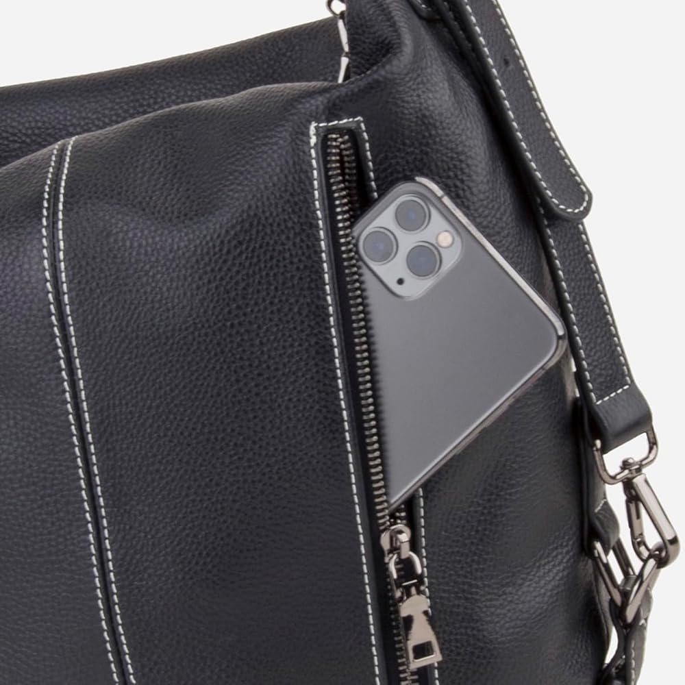 Premium real leather: The leather travel backpack made of natural full grain cowhide genuine leather, Soft and durable, perfect touch feeling and ages beautifully, the lining is made of breathable fabric, the qualified pewter color hardware is non-fading and zipper works smoothly, easy to open and close