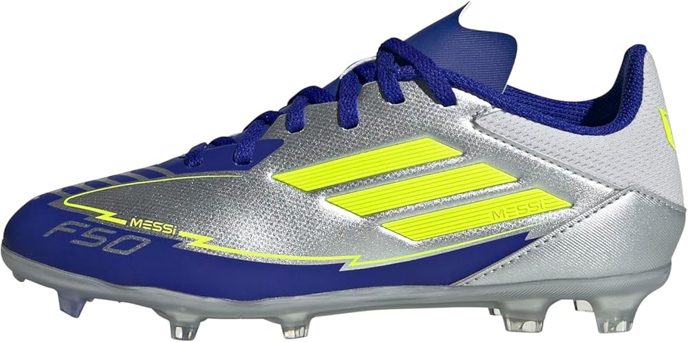 These juniors' adidas F50 League soccer cleats combine Messi's mesmerizing skills with that legendary F50 pace. Part of a range designed to match the GOAT's on-field preferences, they have a flexible HybridTouch upper with a comfortable synthetic tongue. The versatile outsole offers propulsion on firm ground and artificial grass.