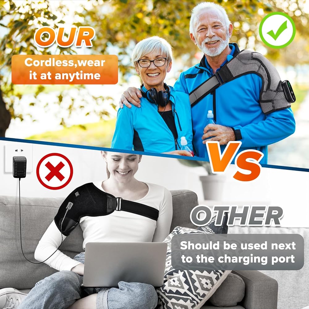 Shoulder Relief & Relaxation: Ergonomic design with heat and massage therapy to improve circulation, reduce stiffness, and relieve pain from frozen shoulder, rotator cuff injuries, bursitis, and other shoulder conditions