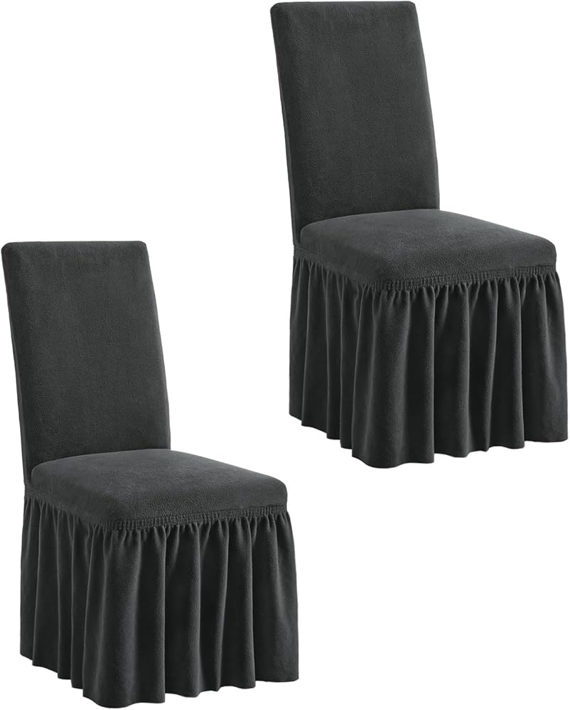 Elegant Skirt——Bottom classy long ruffled skirt of the chair slipcovers can perfectly covers the chair feet.This dining room chair cover refreshes your beloved home,Change the look of old chairs,Save on buying new ones !Soft comfortable fabric just makes it feel a bit like having a sense of well-being when you are sitting!