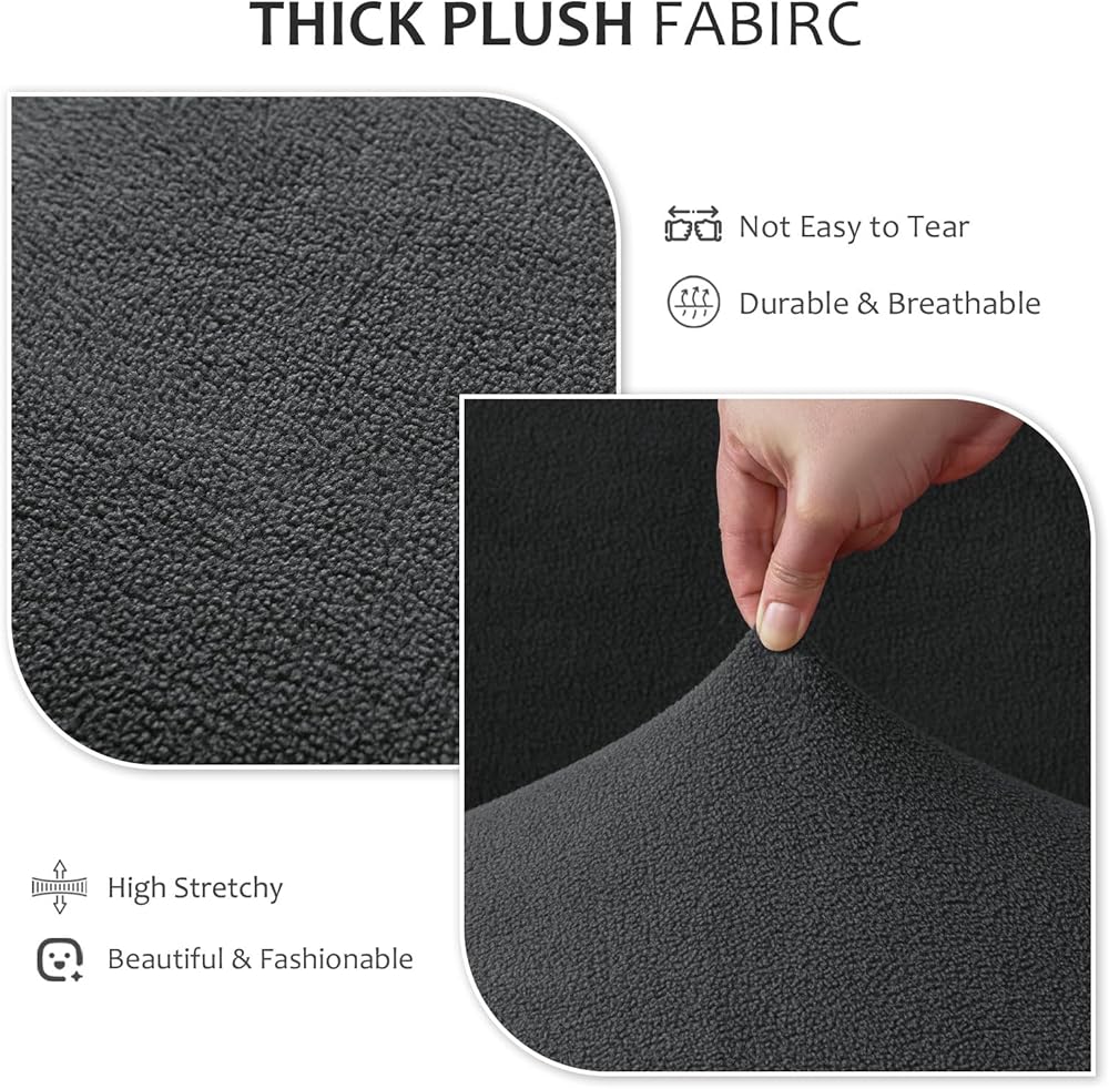Warm Chair Protector——Our high stretch dining room chair covers set of 4 Protect chairs from dirt and stains, thick and not to tear.It's made of 97% polyester plush 3% spandex, which is soft and warm. These kitchen chair covers fit and cover the chairs perfectly as long as the chair's size are within the applicable range. Good choice for protecting chairs from pets and kids
