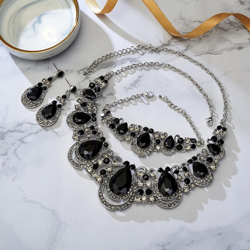 Material: Wedding jewelry set for bride.With a fabulous design and solid construction.The classic and elegant always keep pace with fashion,which will make a timeless accessory to any jewelry collection. can be worn with classy casual with formal attire or Wedding dress ,never goes out of style.Adorned with selected Crystal, crafted with eco-friendly Zinc alloy, Lead-Free and Nickel-Free, this special design is born to match the clothes and your unique beauty.