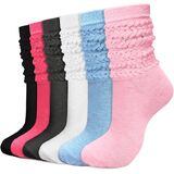 Full Set Womens Slouch Socks - You will receive 6 pairs of women's extra long heavy slouch socks, such as hot pink, pink, yellow, red, black, white scrunch socks, classic elements of daily life