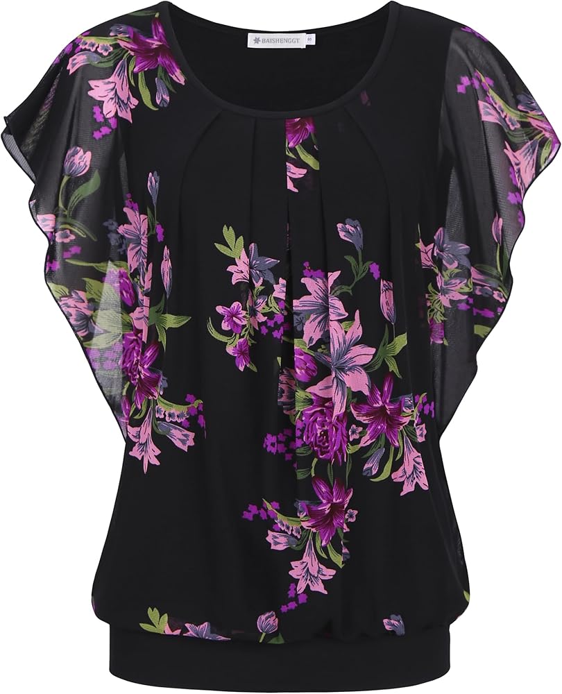 A must have summer tops for women, cute crewneck womens casual blouses, flared batwing semi sheer short sleeve makes you more feminine and flattering, both dressy and casual