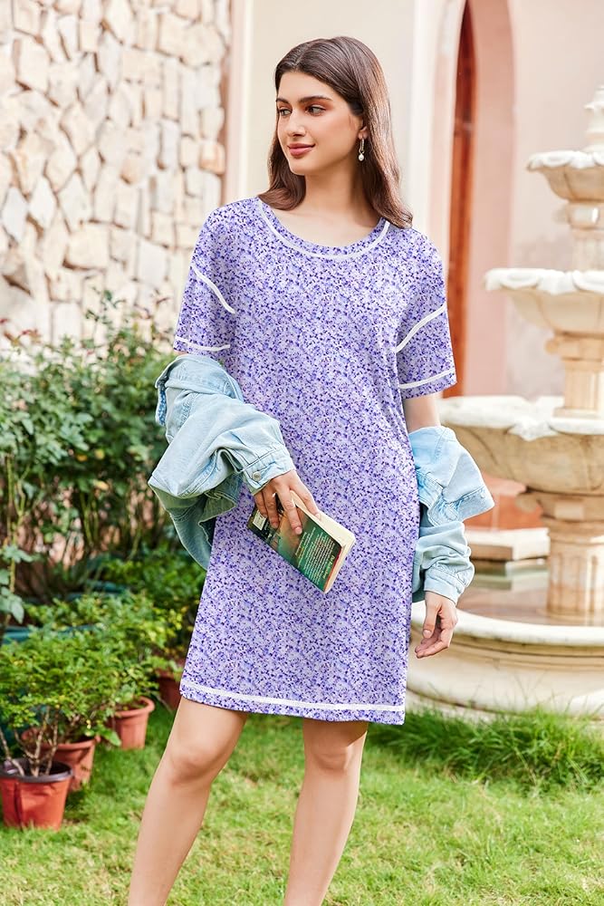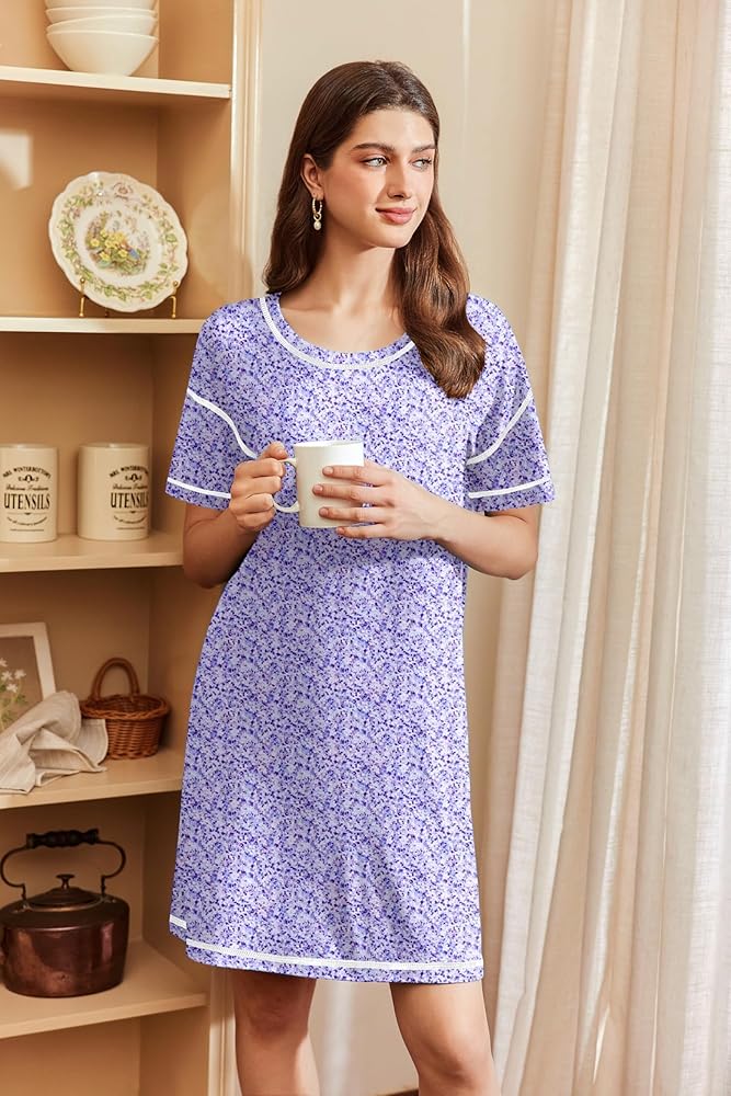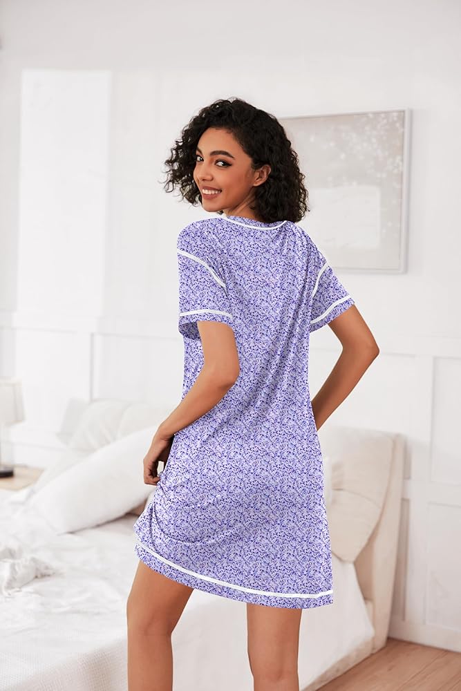 【Stylish Design】The night shirt has some exquisite lines on the scoop neckline, short sleeves, and hem. And the floral patterns of this sleep dress definitely keeps you a chic and refreshed look