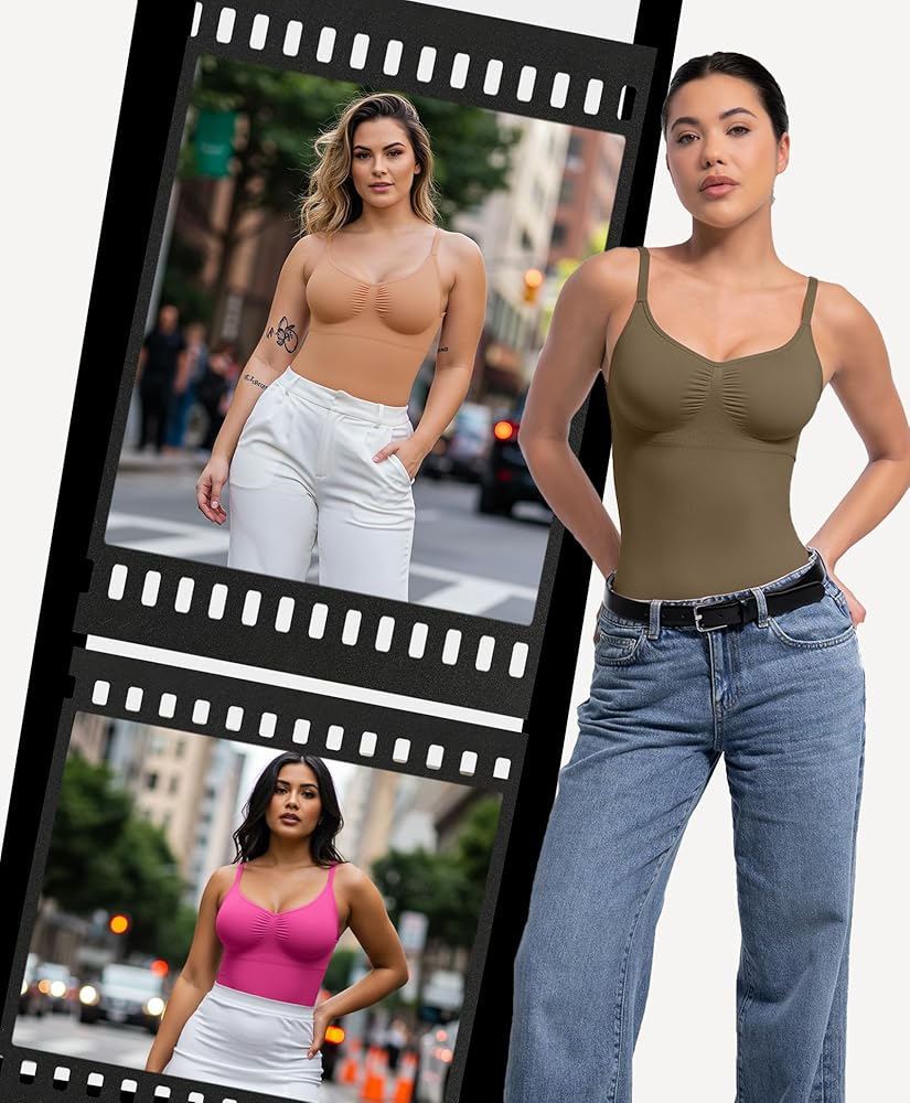 Bust Support & Versatile Padding: Our shapewear bodysuit features a ruched detail in the bust area, providing natural support and a flattering fit. The double-layered fabric enhances stability and ensures worry-free coverage under any outfit, giving you confidence and comfort throughout the day. The included removable pads offer added flexibility—keep them for extra lift or remove them for a more natural feel.