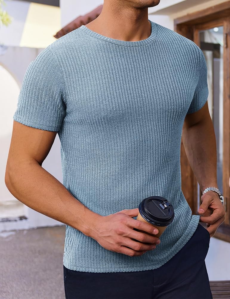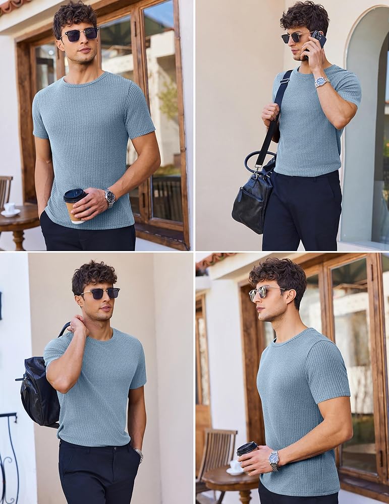 Material: This mens short sleeve T-shirt is made of 97% polyester and 3% spandex knitted fabric with ribbed design, lightweight fabric, soft and stretchy, comfortable to wear.