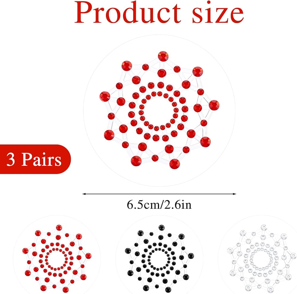Wanmu 3 Pairs Fun Crystal Rhinestone Breast Nipple Covers, Pasty Diamond Reusable Rave Halloween Tassel Stickers Gift Christmas Petals Glitter Sexy Pasties Nipple Stickers for Women