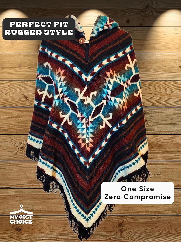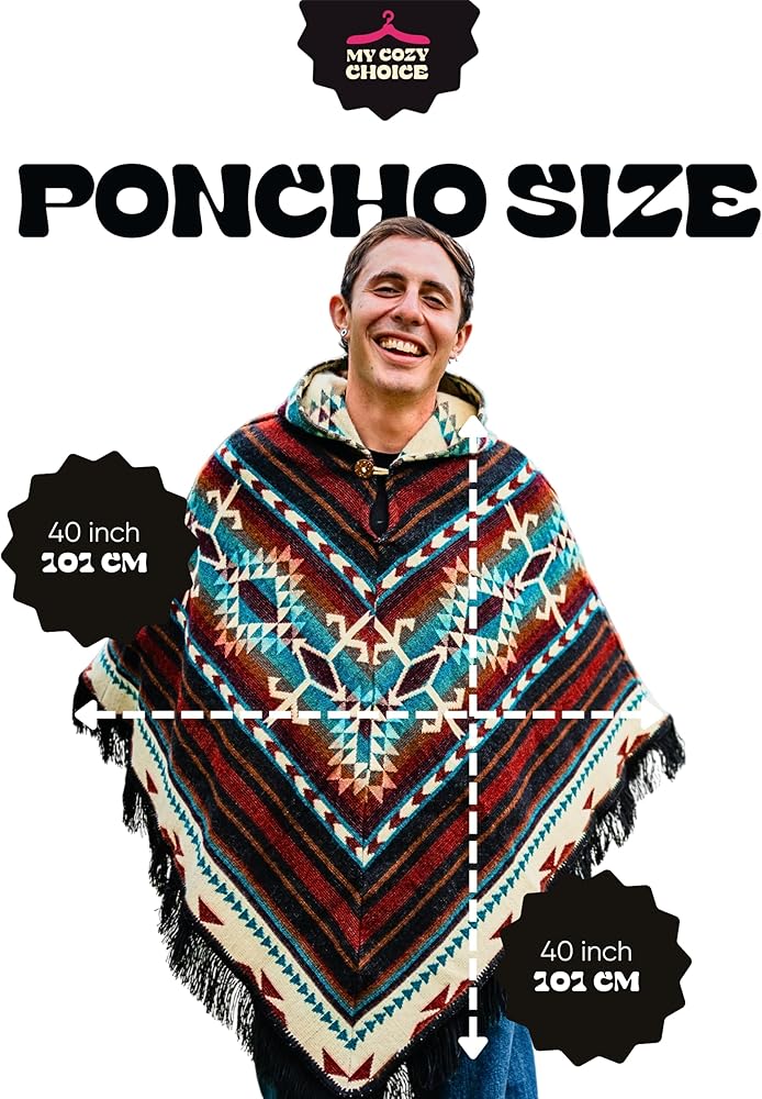 【 WARMTH & SOFTNESS 】 Adult Ponchos with Hood for Men combine 50% alpaca wool and 50% recycled Orlon for triple the warmth without itch. Naturally breathable and thermoregulating for cozy comfort in any season.