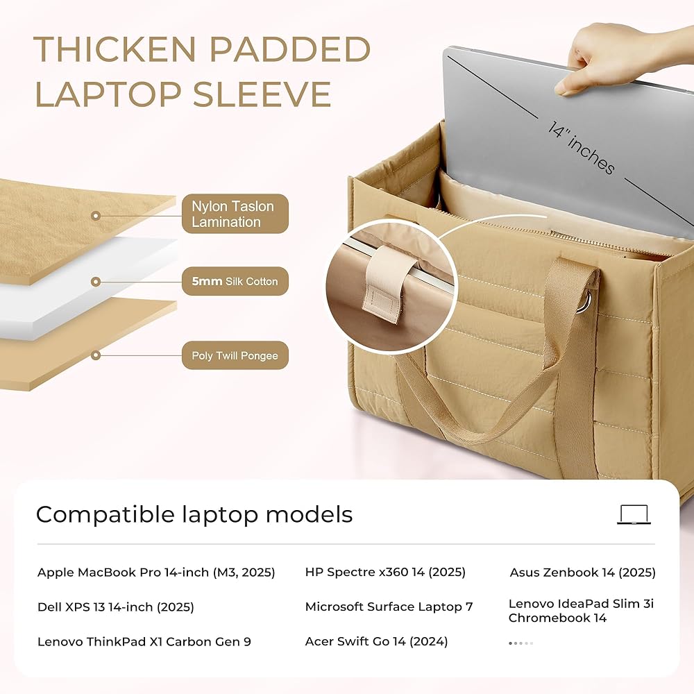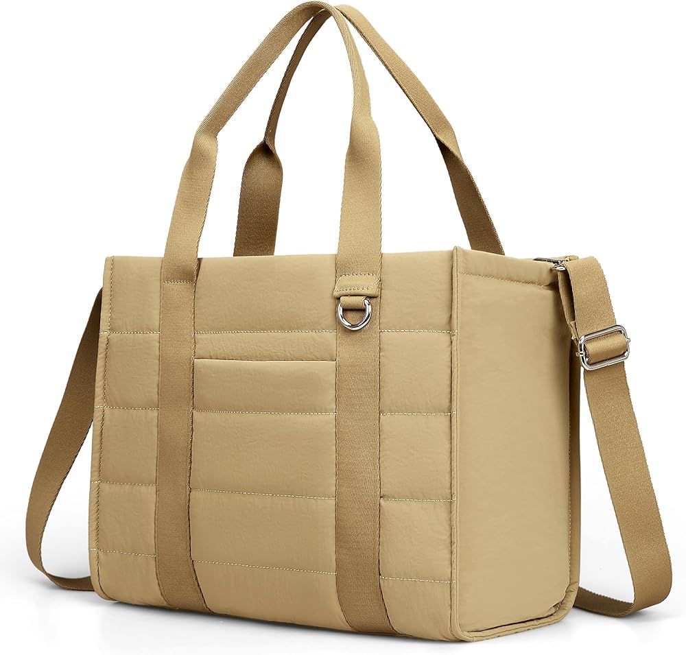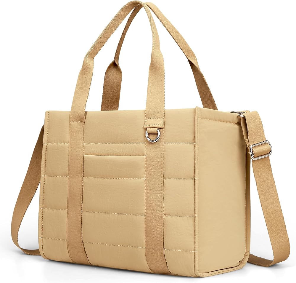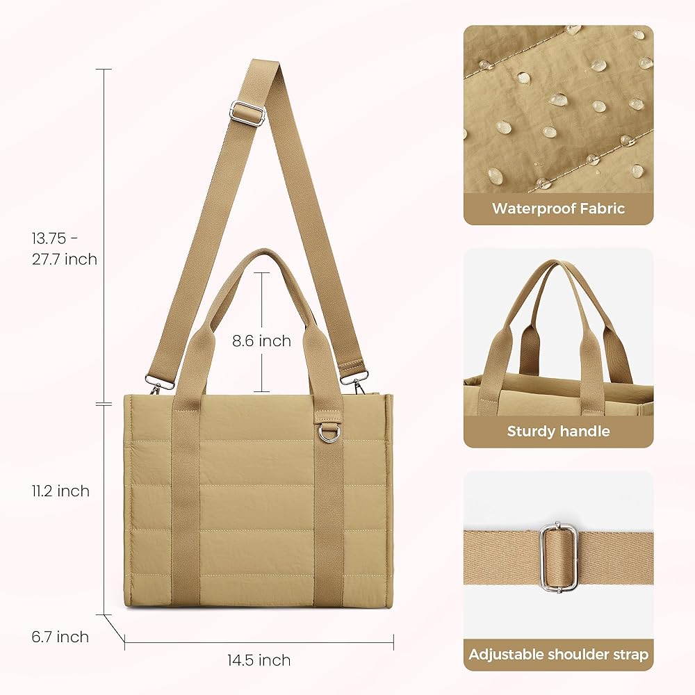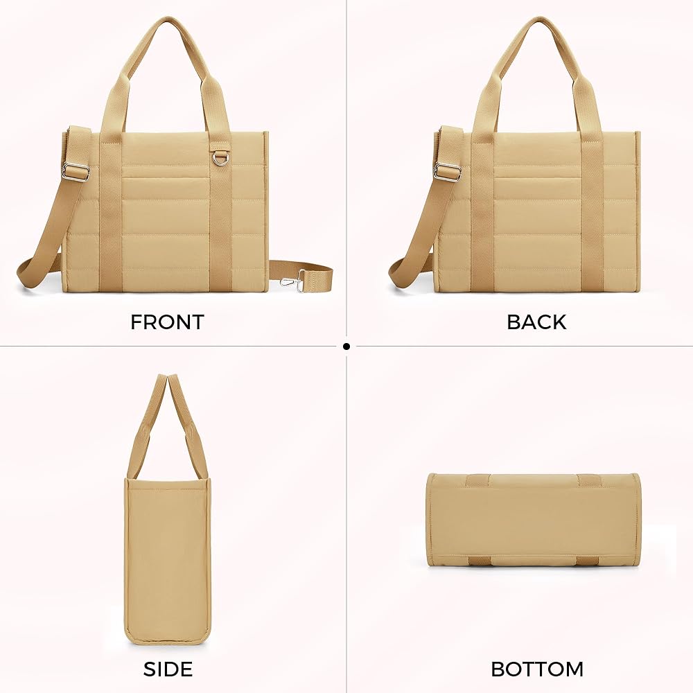 HIGH-QUALITY MATERIAL & SIZE: The VONAL travel tote bags for women size is 14.5 × 6.7 × 11.2 inches (L×W×H), only 1.1LBS. The fabric is made of nylon Taslan, which is waterproof and durable. It is soft and skin-friendly. This puffy women's tote handag combines fashion and functionality, being both practical and stylish, enhancing your look while meeting all your practical needs