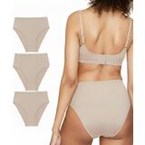 Flattering High-Waist and High-Hip Cut: Designed to sit high on the waist, this high-rise brief hugs you comfortably while accentuating your natural curves. The high-hip cut adds a sophisticated, leg-lengthening effect, giving a fresh, modern twist to a timeless silhouette. It's the perfect blend of style and ease, offering a fit that flatters effortlessly for all-day confidence.
