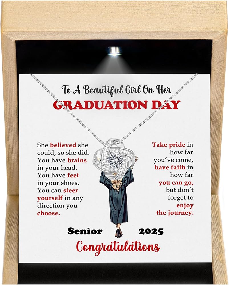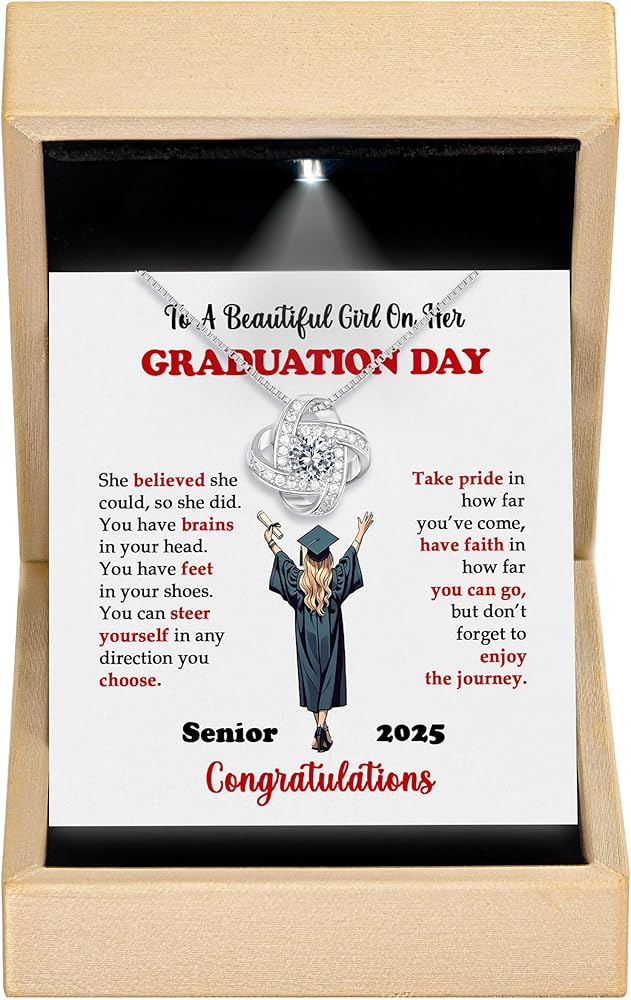2025 Grad Gift Of Love – Brings Tears Of Joy To Her: Watch her eyes light up in surprise as she opens the elegant box, revealing a stunning graduation necklace & a heartfelt message. Celebrate her journey & dedication with a gift that speaks volumes
