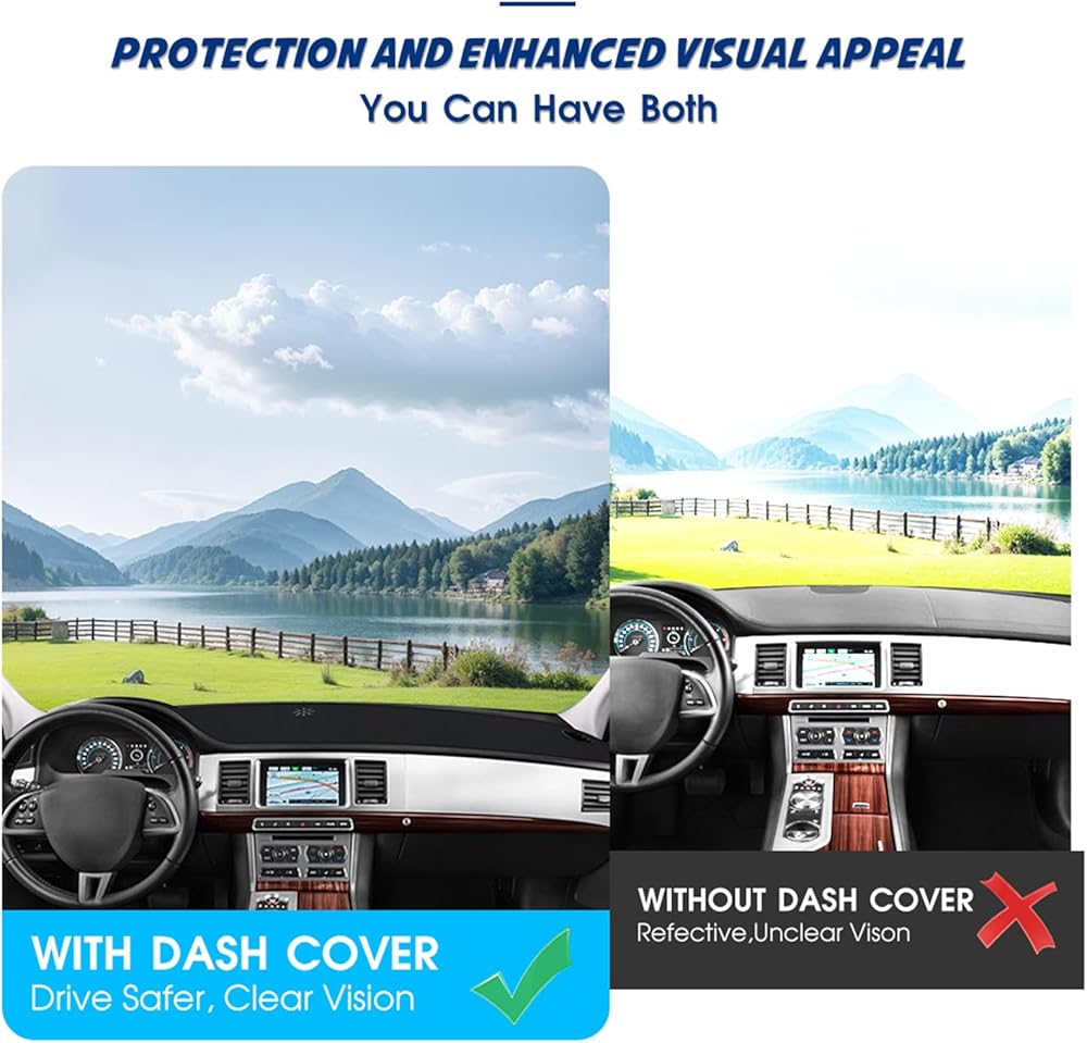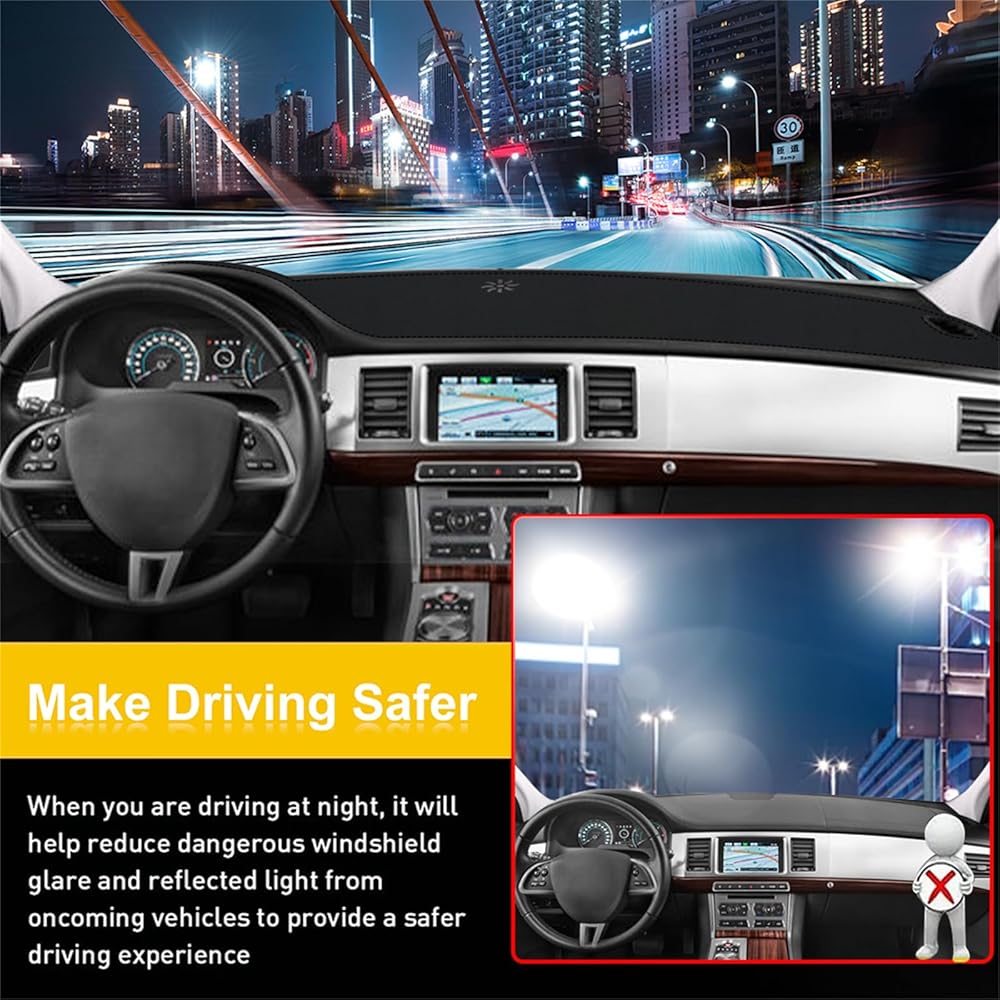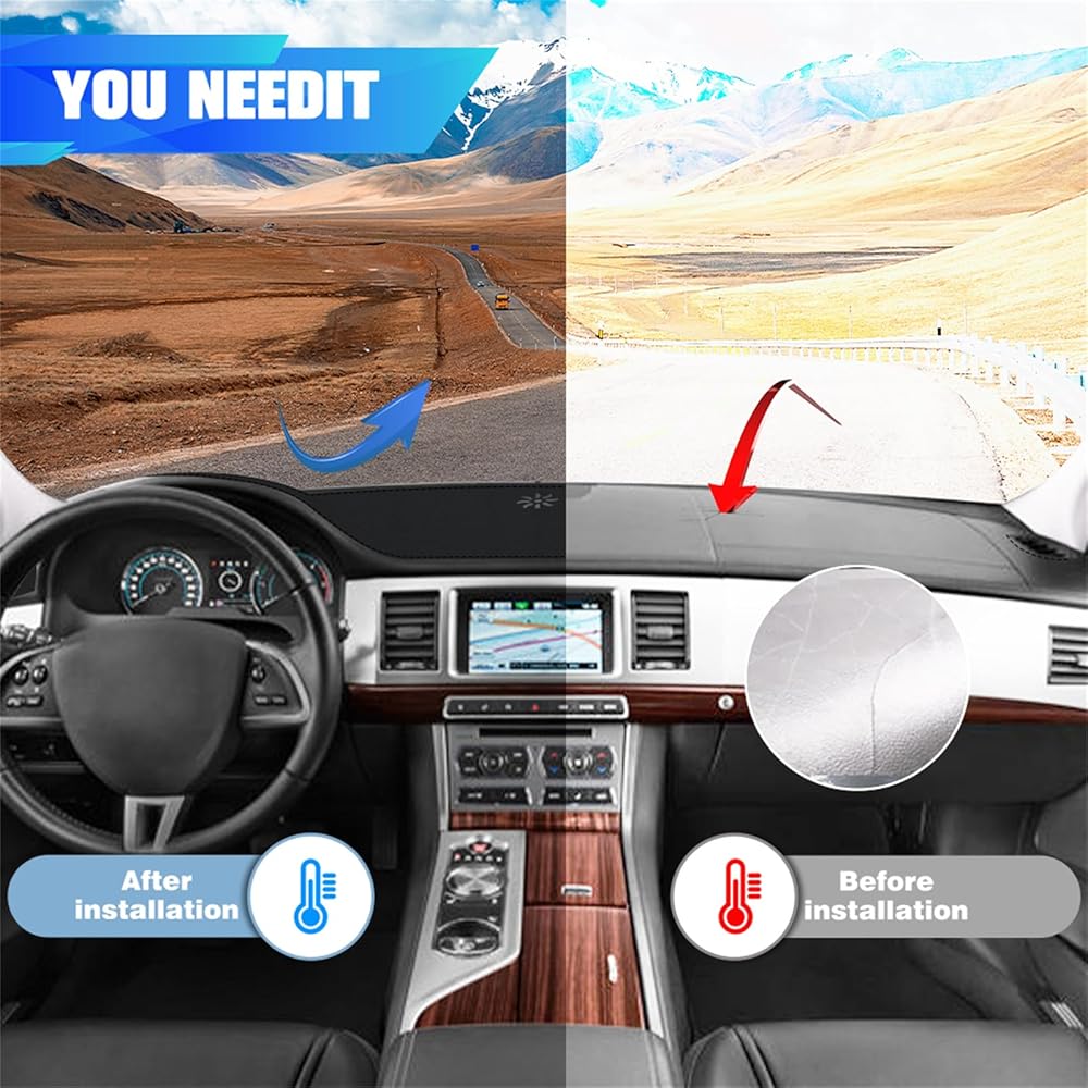 Comprehensive Protection: Not only does this dashboard cover protect your dashboard from sun damage and cracking, but it also reduces glare from the windshield, improving driving safety. Additionally, it helps conceal imperfections for a sleek, clean look.
