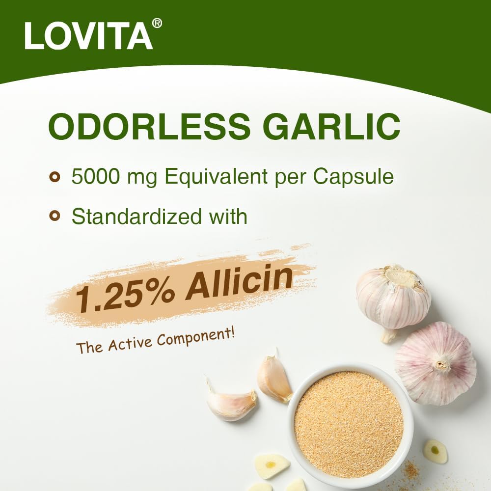 【ALWAYS ODORLESS】- LOVITA garlic capsules are specially formulated to be odorless, providing a convenient garlic supplement without the strong smell or aftertaste."