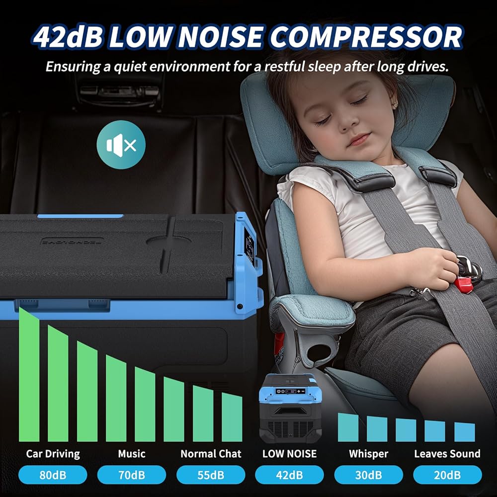 [Quiet Operation] Operates at a low noise level of 42 dB, ensuring a quiet environment for rest after long drives. Plug-and-play, no installation required. Temperature can be switched between Fahrenheit and Celsius. Magnetic design with a rubber gasket seal, EPDM is more durable than EVA, extending the insulation time.