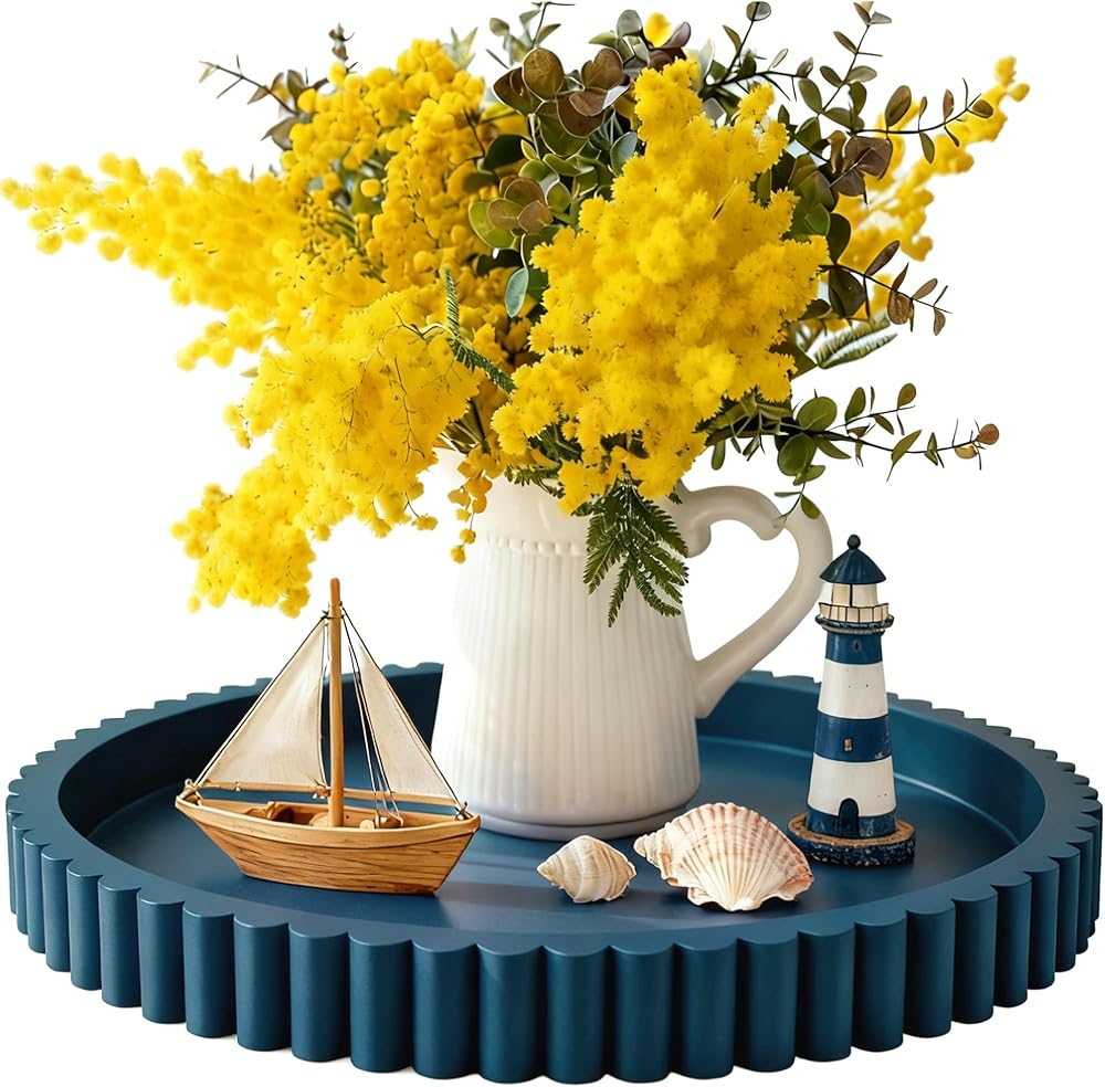 【Gorgeous Tray】: The wooden coffee table tray boasts an elegant design with fluted circle, exuding natural simplicity. Use it as a unique centerpiece for dining tables, counters and more, but be prepared to receive tons of compliments for your furniture decor.