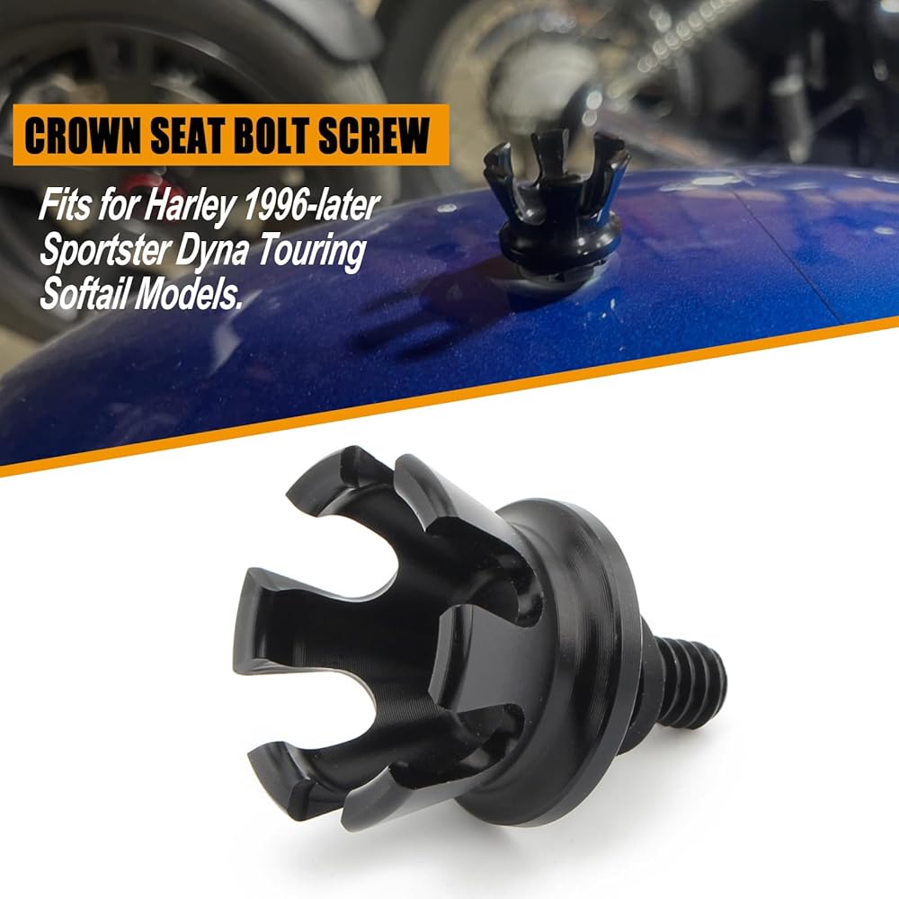 Seat Bolt Screw 1/4"-20 Thread Crown Seat Nut Aluminum for Harley 1996-2024 Sportster 883 1200 Touring Road King Street Glide Dyna Street Bob Softail Fat Boy Wide Glide (Black)