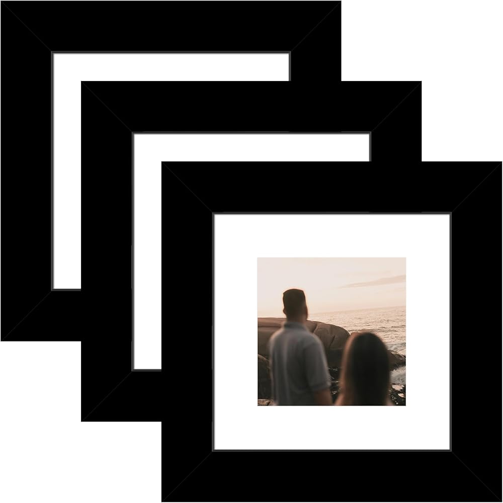 4x4 Picture Frame 3 Pack,Black Wooden Frame with Tempered Glass,Display Pictures 3x3 with Mat or 4 x 4 Without Mat,4 by 4 Photo Frame for Wall or Tabletop