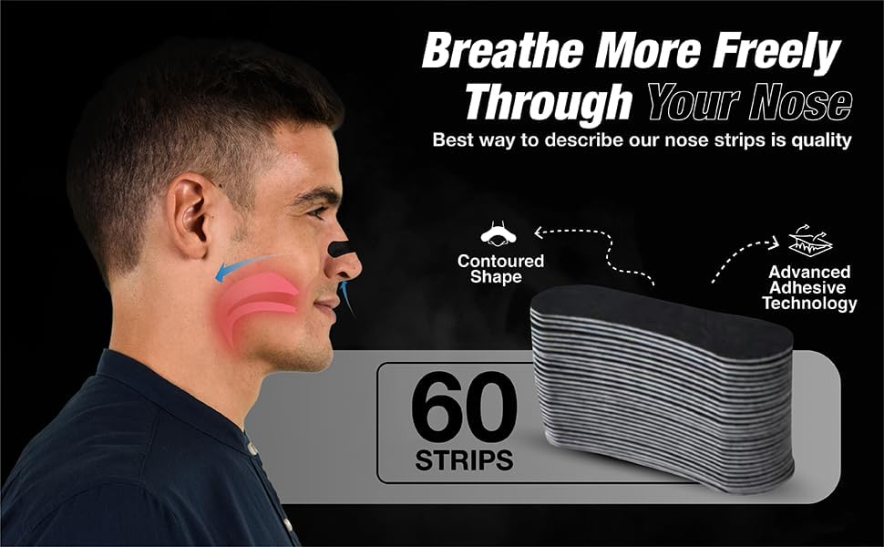 Best way to describe our nose strips is QUALITY, Tailored towrds delivering only the finest products, our strips are crafted from premium materials providing an optimal product for our customers. PERIOD. Experience better breathing with these effective nasal strips that gently lift and open nasal passages. These spring-like strips adhere comfortably to the outside of your nose, helping to instantly increase airflow when you need it most. Perfect for nighttime use, during physical activities, or whenever you want to breathe more freely through your nose. The flexible design works with your unique nose shape to provide a custom fit. These strips can help reduce snoring and provide relief from nasal congestion due to colds or allergies. Each strip features strong adhesive that stays put throughout your sleep or activity, yet removes easily when you're done. The clear strips are barely noticeable when worn, making them suitable for day or night use. Whether you're an athlete looking to optimize your breathing during workouts or someone seeking a better night's sleep, these nasal strips offer a simple solution for improved nasal breathing.