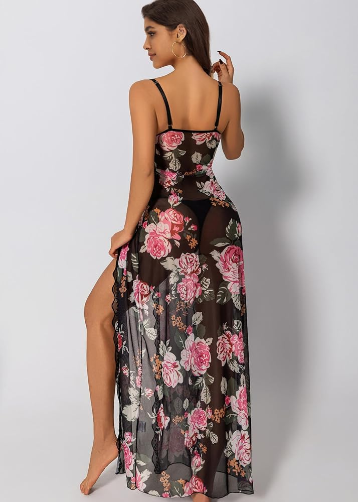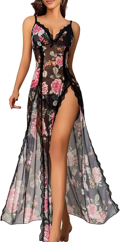【Sexy & Elegant Design】 Features a deep V-neckline, floral lace trim, and a flowy sheer silhouette that enhances your natural curves. The adjustable straps ensure a customized fit for all body types.