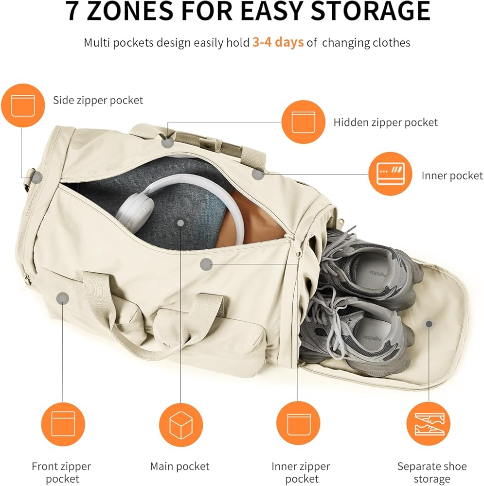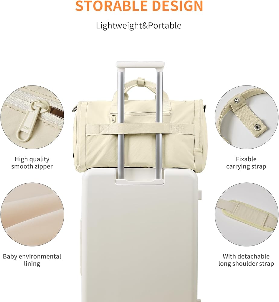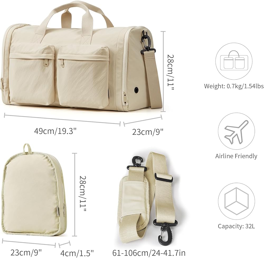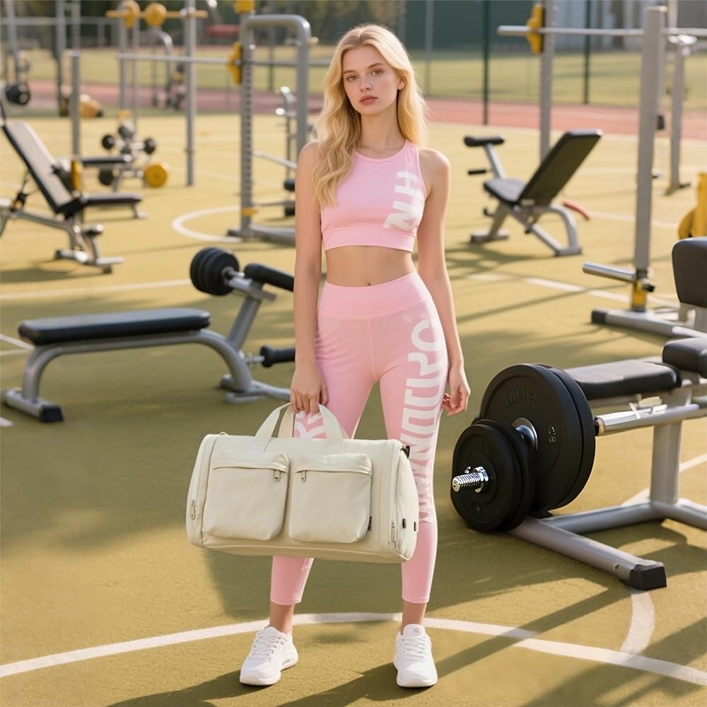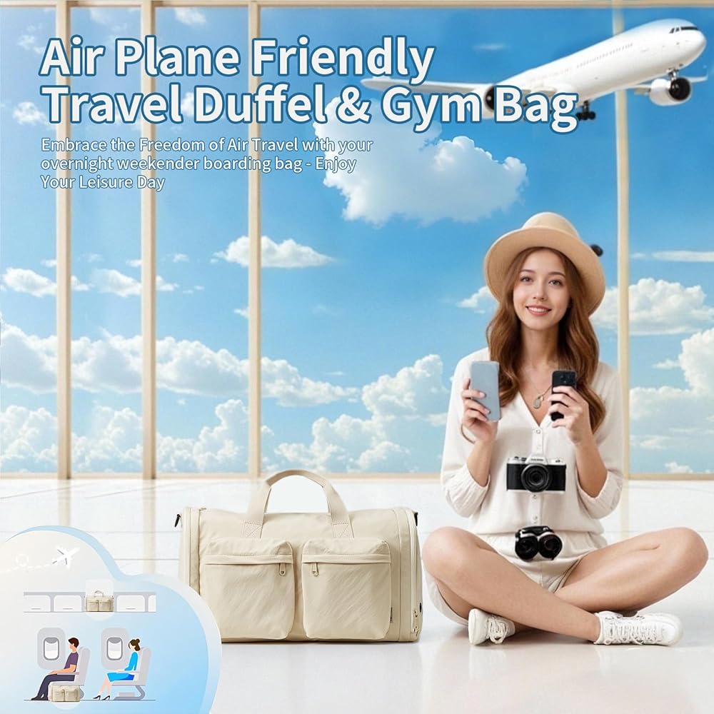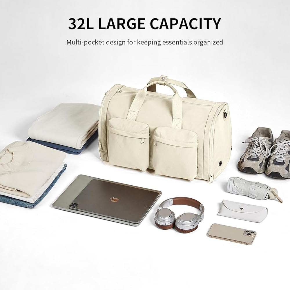 【32L Scientific Capacity, Airline-Grade Portability】This gym bag or travel duffel bag for women men bag is designed to hold 2-4 sets of travel clothes and a 15.6-inch laptop, with a side pocket compatible for iPad and other essentials. Plus, it meets airline carry-on standards, effortlessly fitting into overhead cabin compartments. Perfect for fitness enthusiasts and frequent travelers alike!