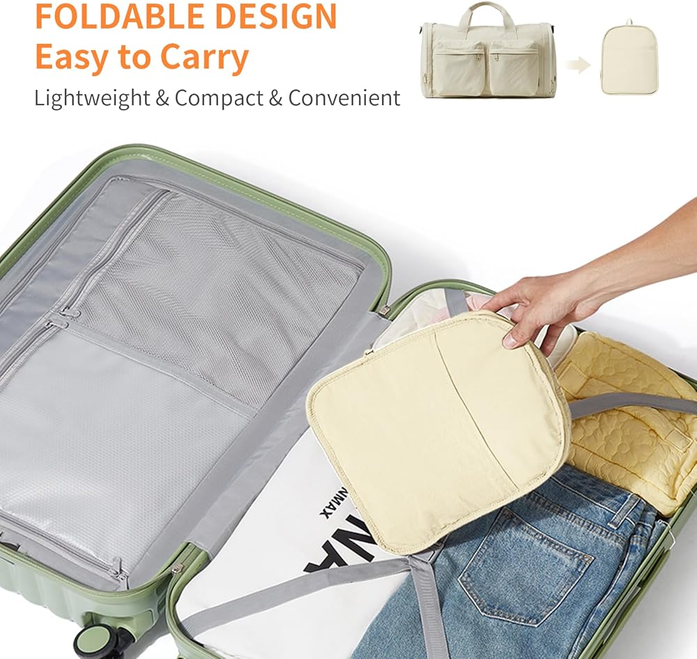 【Foldable Design & Luggage Compatibility】The large gym bag folds into a compact cube in just 3 seconds, shrinking to the size of an A4 sheet for easy storage and portability. The hidden back strap allows instant attachment to your luggage handle, freeing your hands for seamless transitions between business trips and daily commutes.