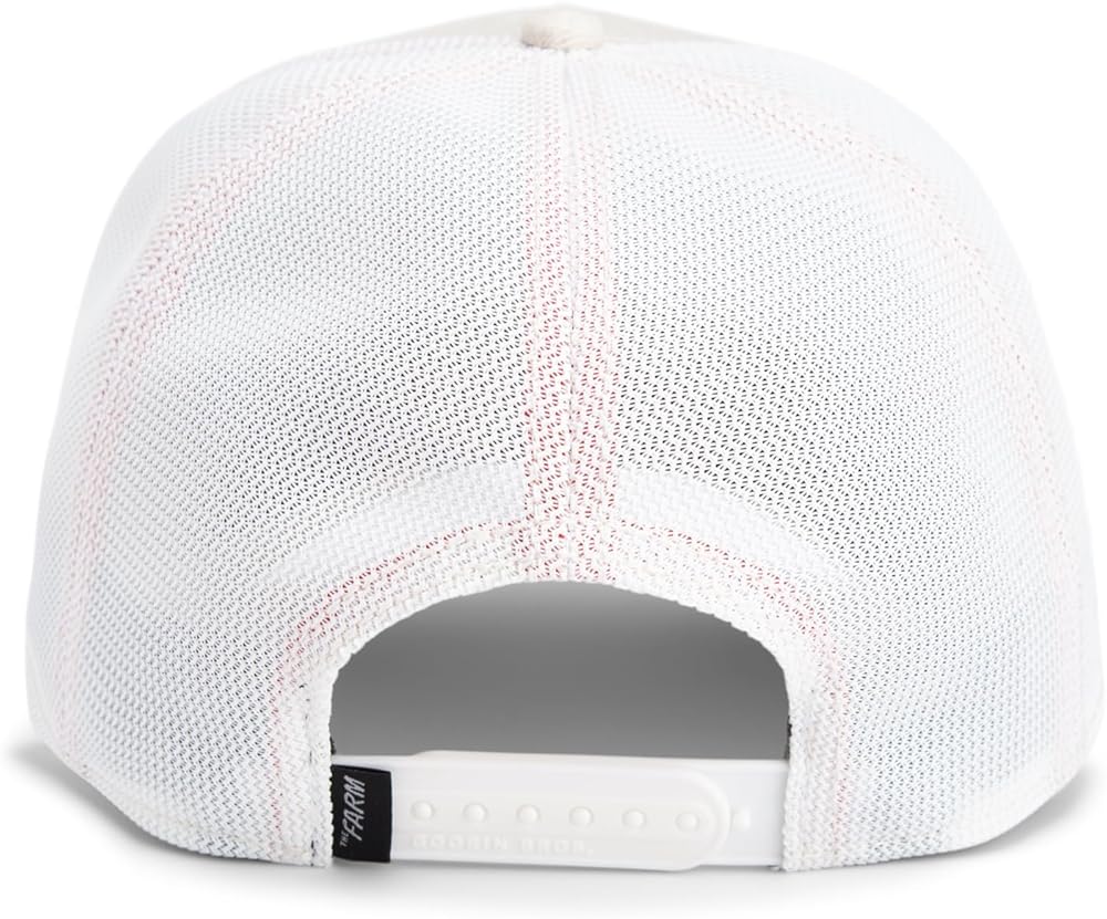 Interior of the hat may vary. Depending on style/color, hat may include custom tape with "The Farm" wordmark. All hats come with a polycotton sweatband.