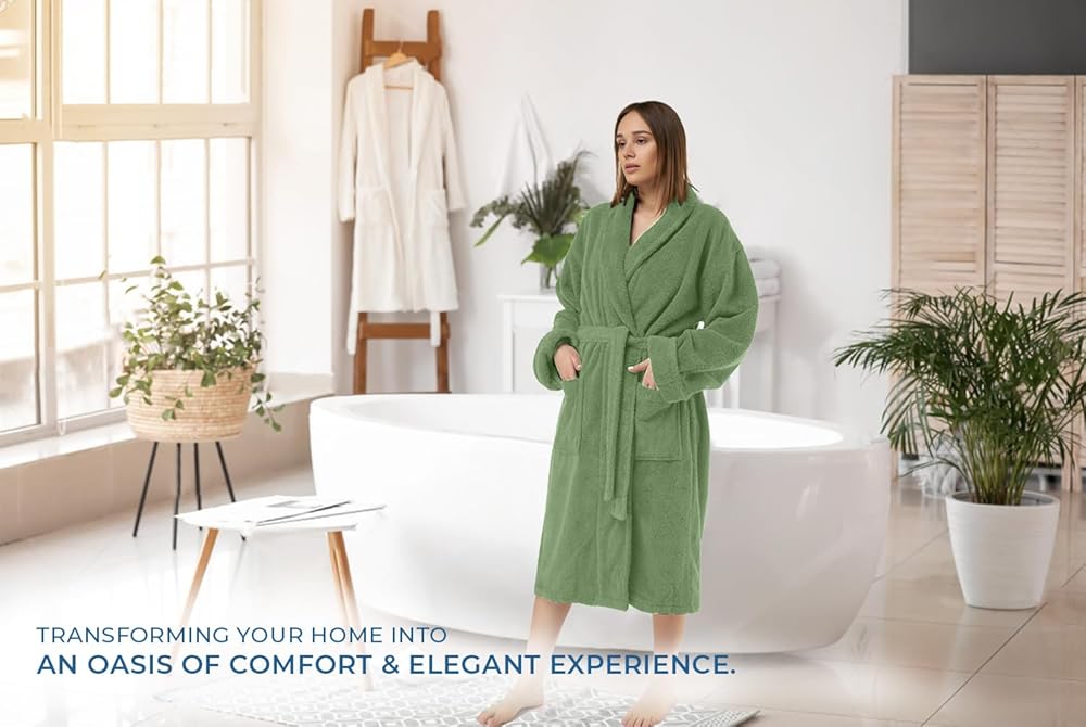 ✅𝐒𝐮𝐩𝐞𝐫𝐢𝐨𝐫 𝐐𝐮𝐚𝐥𝐢𝐭𝐲: Cover yourself in cozy comfort with our comfy terry cloth robes for women, made entirely from 100% ring-spun cotton. Our bath robe is good at soaking up water, lasting a long time, and feeling soft. These robe for men are great for chilling at home, going to the spa, staying in a hotel, taking a sauna bath, hanging out by the pool, or enjoying a relaxing time.