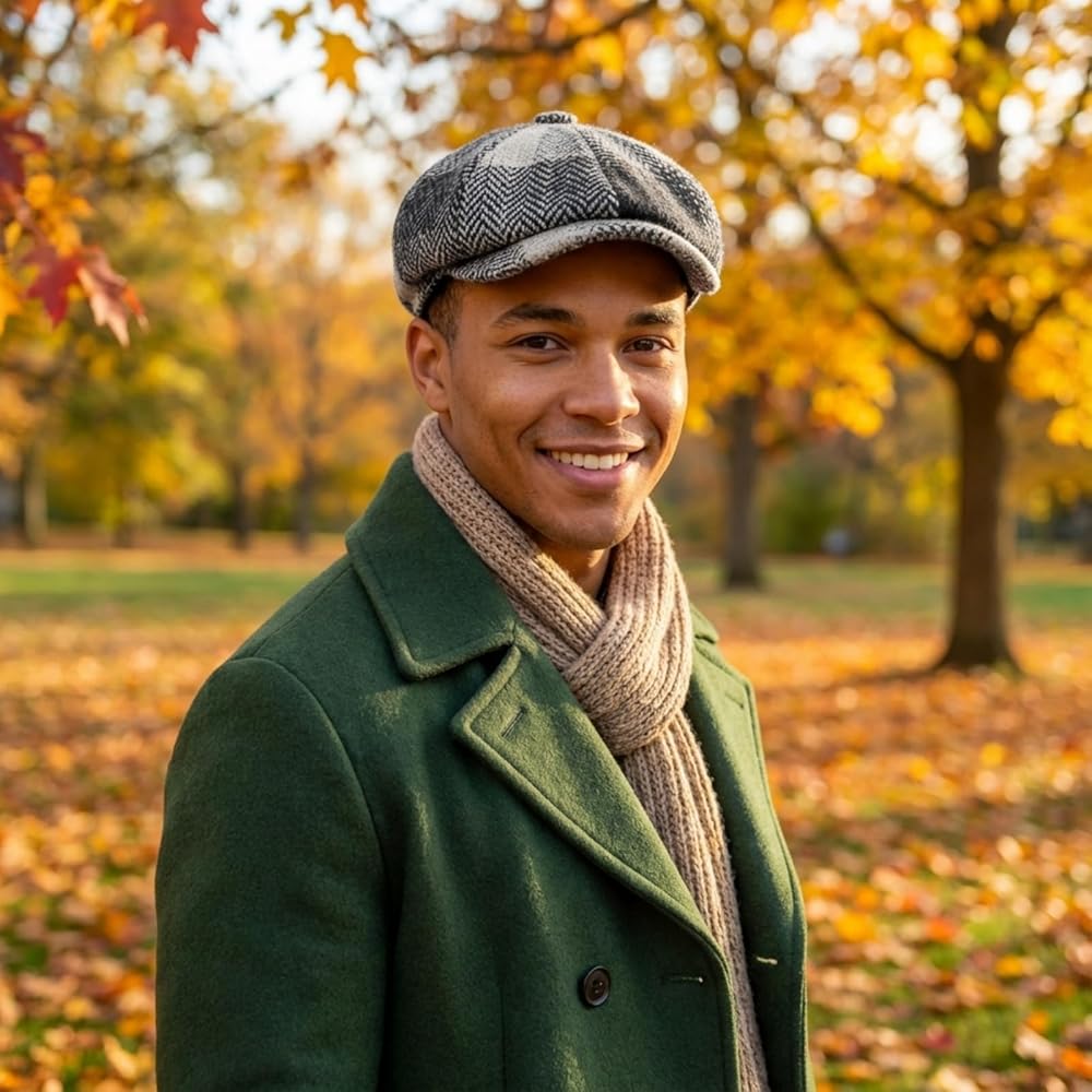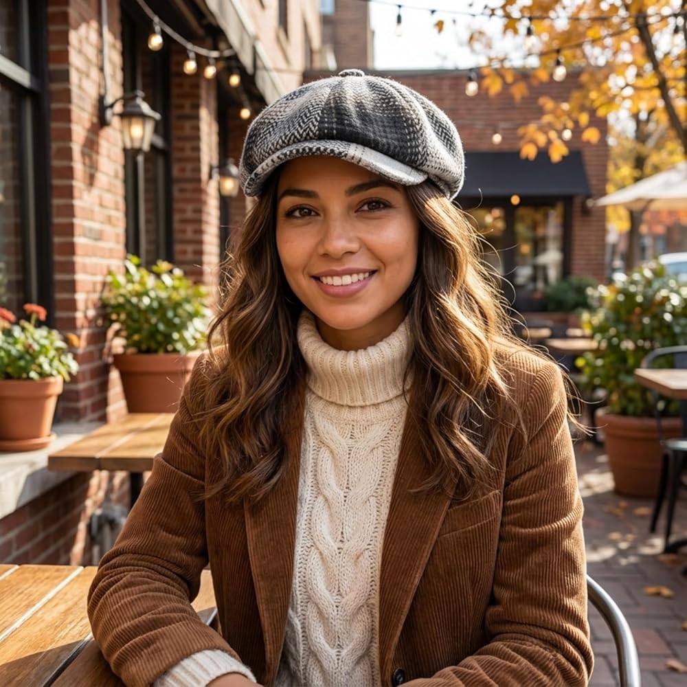 Women Newsboy Cap, Vintage Winter Warm Cabbie Beret Hat 8 Panel Herringbone Tweed Gatsby Ivy Painter Cap, 55-59cm