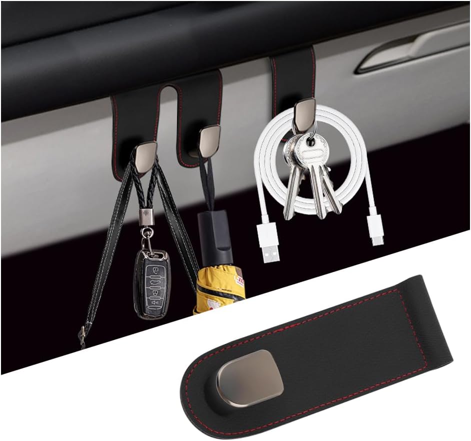 1. Our car organizer hooks are made of high quality microfiber leather, zinc alloy, a perfect blend of elegance and practicality. This material is luxurious to the touch, while offering excellent abrasion resistance and superb durability,Unlike inferior alternatives, our hooks are resistant to peeling and fading, ensuring that they retain their original appearance.If accidentally soiled, a simple wipe with a damp cloth will restore them to their spotless original condition