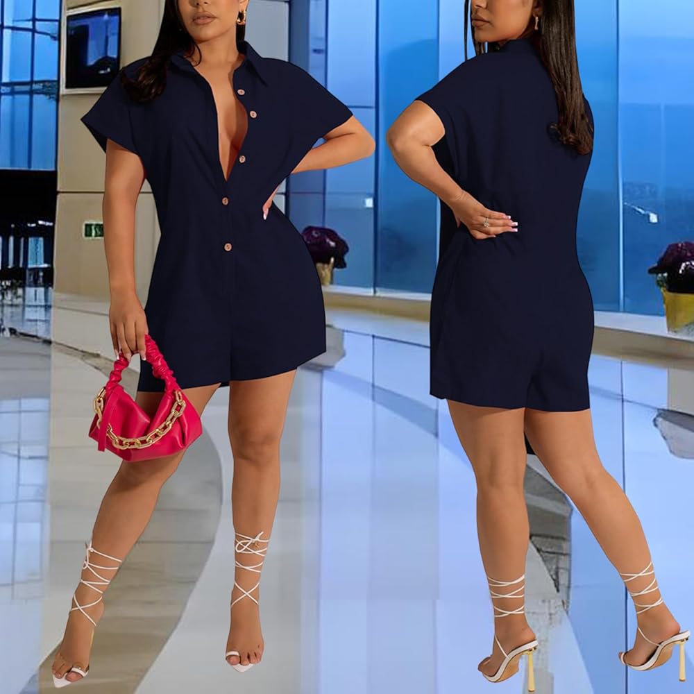 Features:This casual deep v neck button down shirt short pants overalls rompers,with high quality and unique design,simple but not dull,This is a must have in your summer wardrobe,feels good on skin,hugs your body perfectly,perfectly shapes your curves.