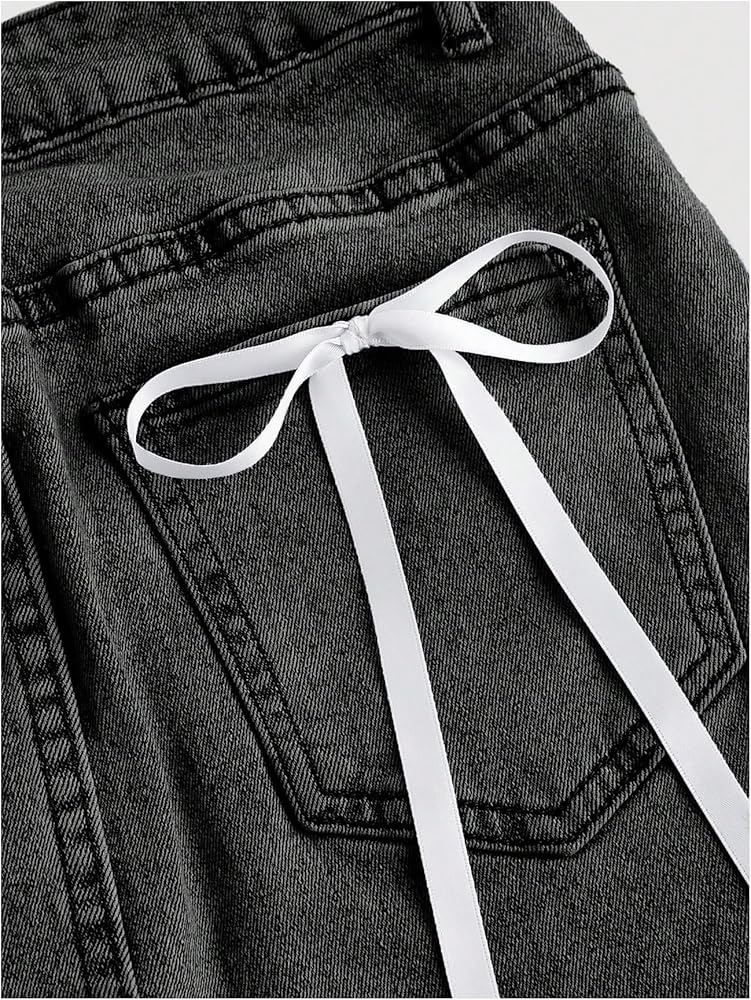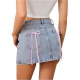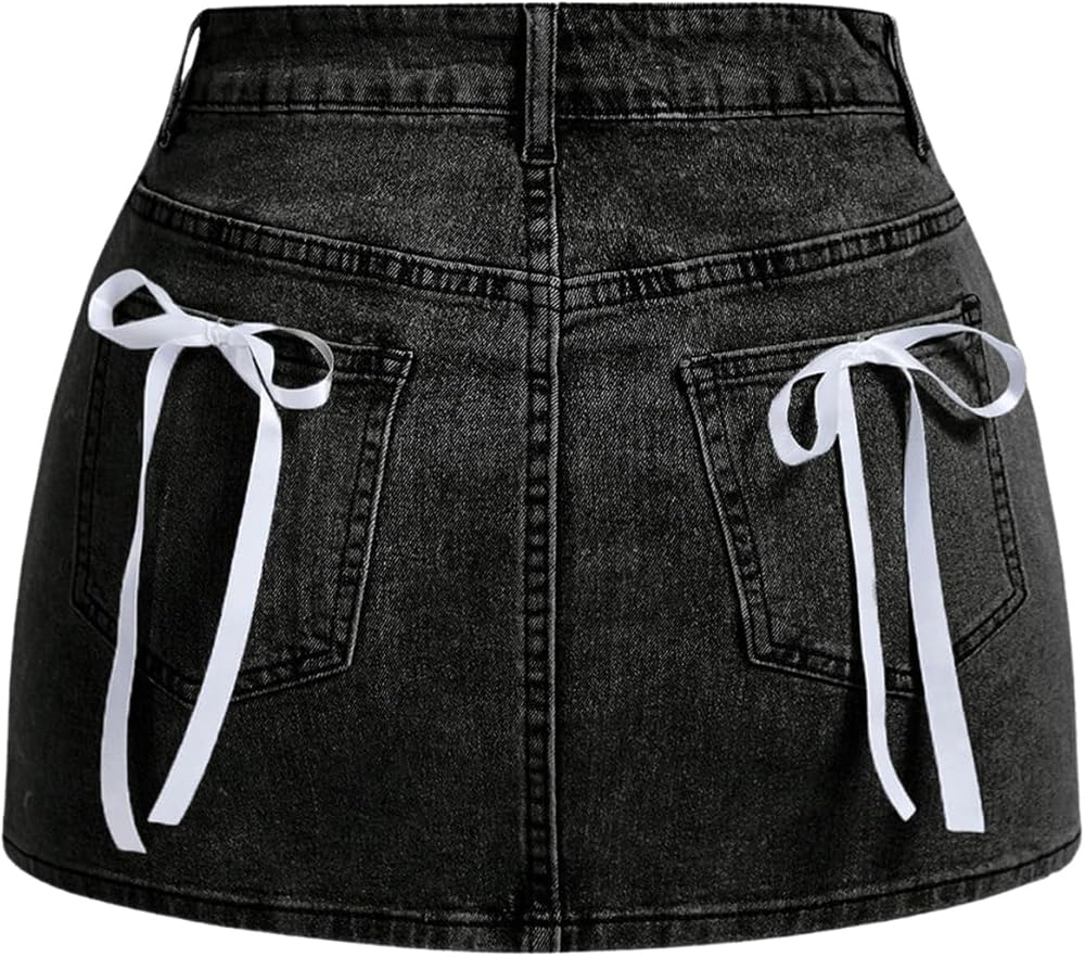 MakeMeChic Women's Denim Skirt High Waist Bow Pocket Bodycon Y2K Mini Jean Skirts