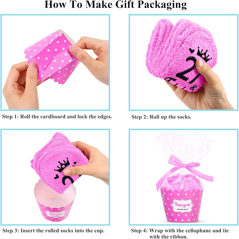 CUPCAKE PACKAGING: These socks are provided in a flat pack, which includes a gorgeous gift box and a paper belt for quick assembly into a cute cupcake shape.
