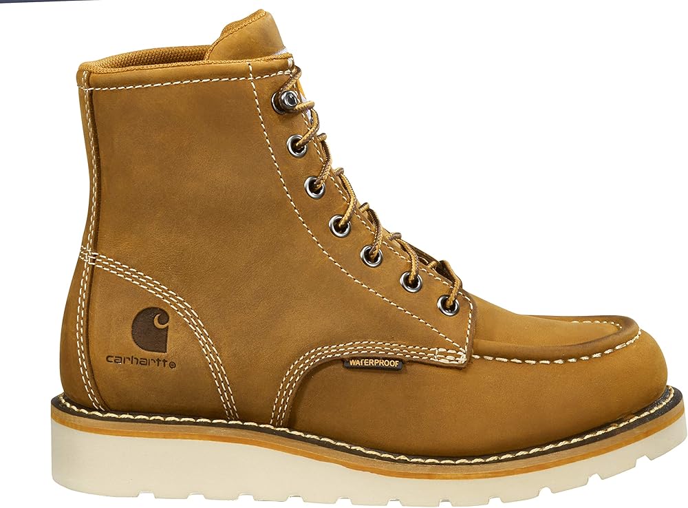 Carhartt developed Wedge work boots to combine the popularity of wedge style work boots with improved comfort and durability that Carhartt builds into every product. Iconic boots for time-honored work. The upper is made with a high grade oil tanned leather and the dual density Carhartt rubber outsole provides full ground contact, improved cushion comfort and the durability of Goodyear welt contruction. Storm Defender® Waterproof Breathable Protection designed to be completely waterproof and to keep your feet dry in most types of wet conditions utilizing a waterproof and breathable membrane.